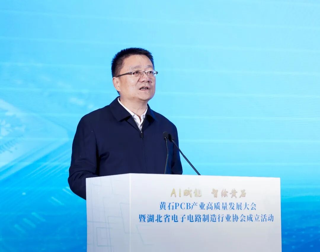 吴之凌代表市委市政府向各位嘉宾的到来表示热烈欢迎,向关心支持黄石PCB产业发展的各界人士表示衷心感谢。他指出,“十四五”时期,黄石主动对接全省“51020”先进制造业产业集群,坚定推进PCB产业高质量发展,产业质效持续提升,产能规模稳居全国第三,产业迈向高端化终端化。当前,人工智能产业蓬勃发展,PCB产业发展前景广阔,真诚欢迎广大企业家来黄石考察投资,市委市政府将持续发扬“不过夜”精神,以一流产业生态、设施配套、营商环境,为企业发展提供优质高效服务。