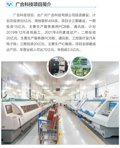 区项目办工作人员程正道介绍,广合科技项目总投资50亿元,致力打造PCB行业内高端印制电路板的智能化示范工厂,助力PCB产业转型升级。