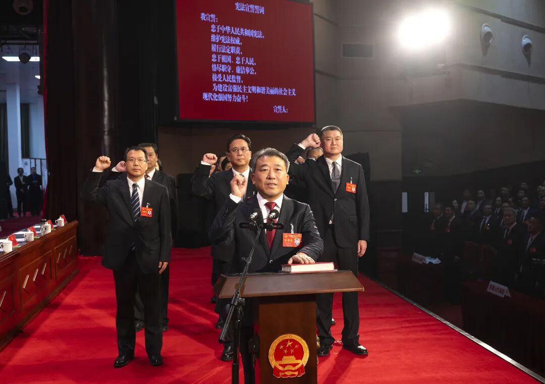 大会随后进行宪法宣誓仪式。俞远汉领誓,其他宣誓人员跟诵誓词。