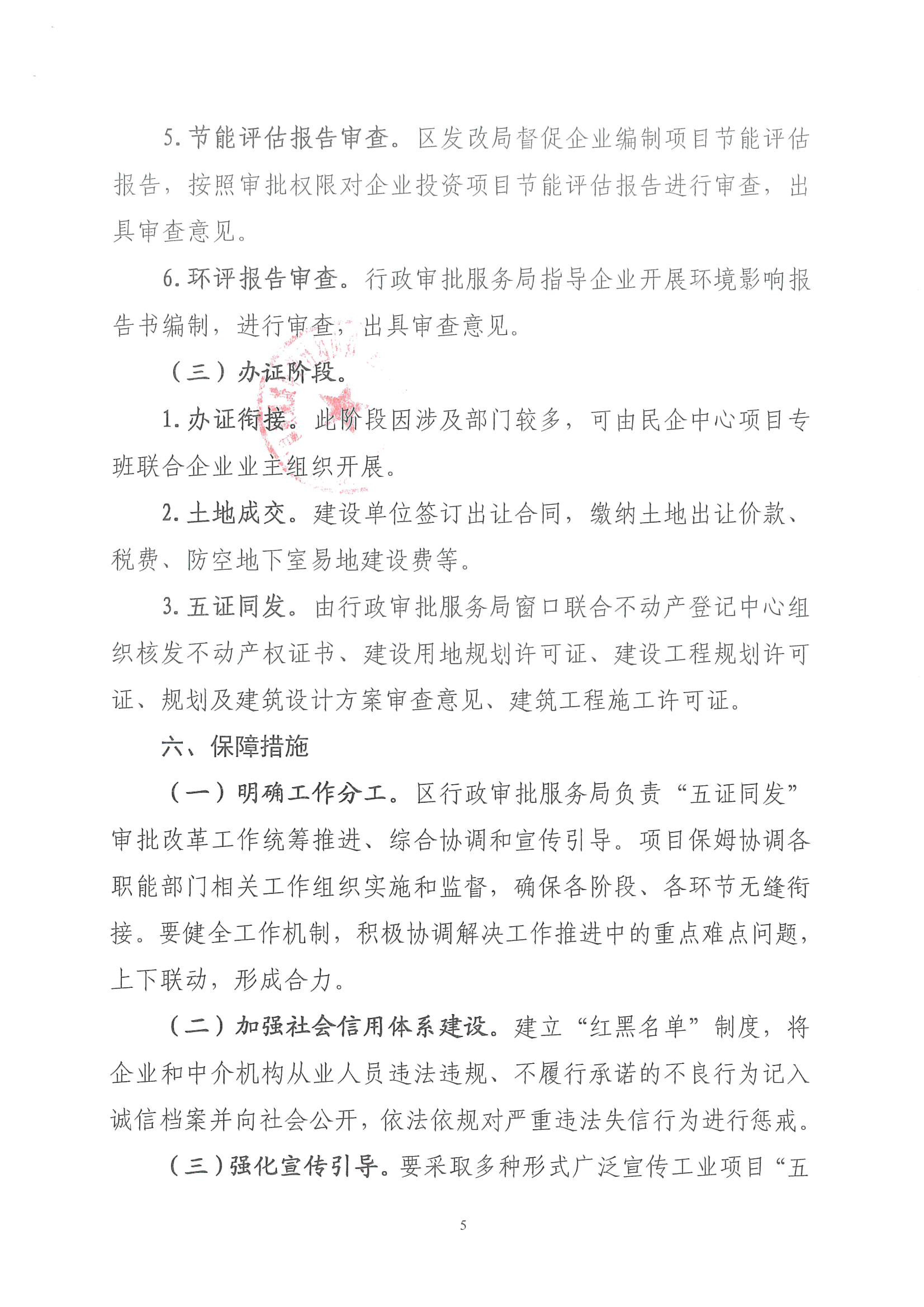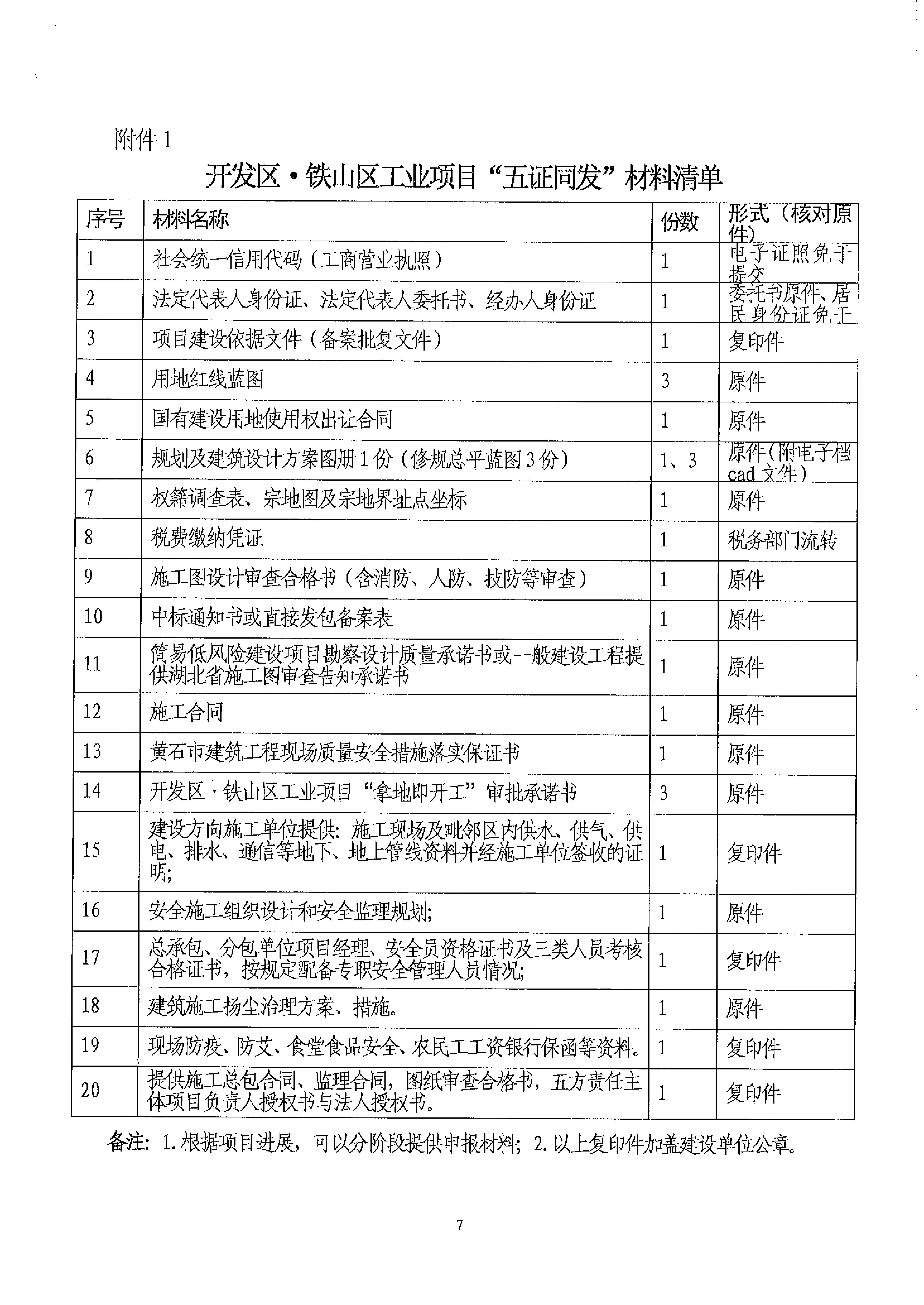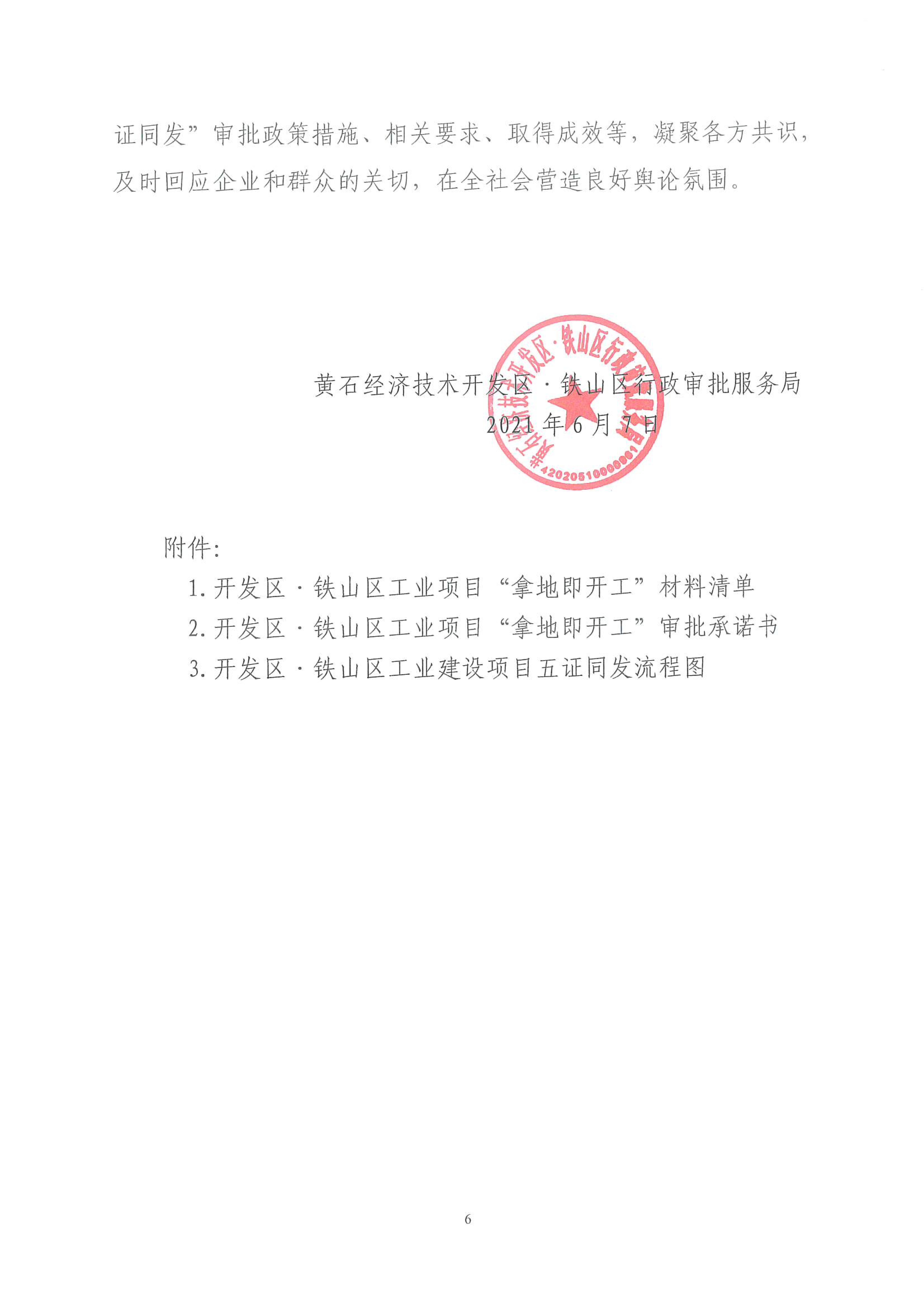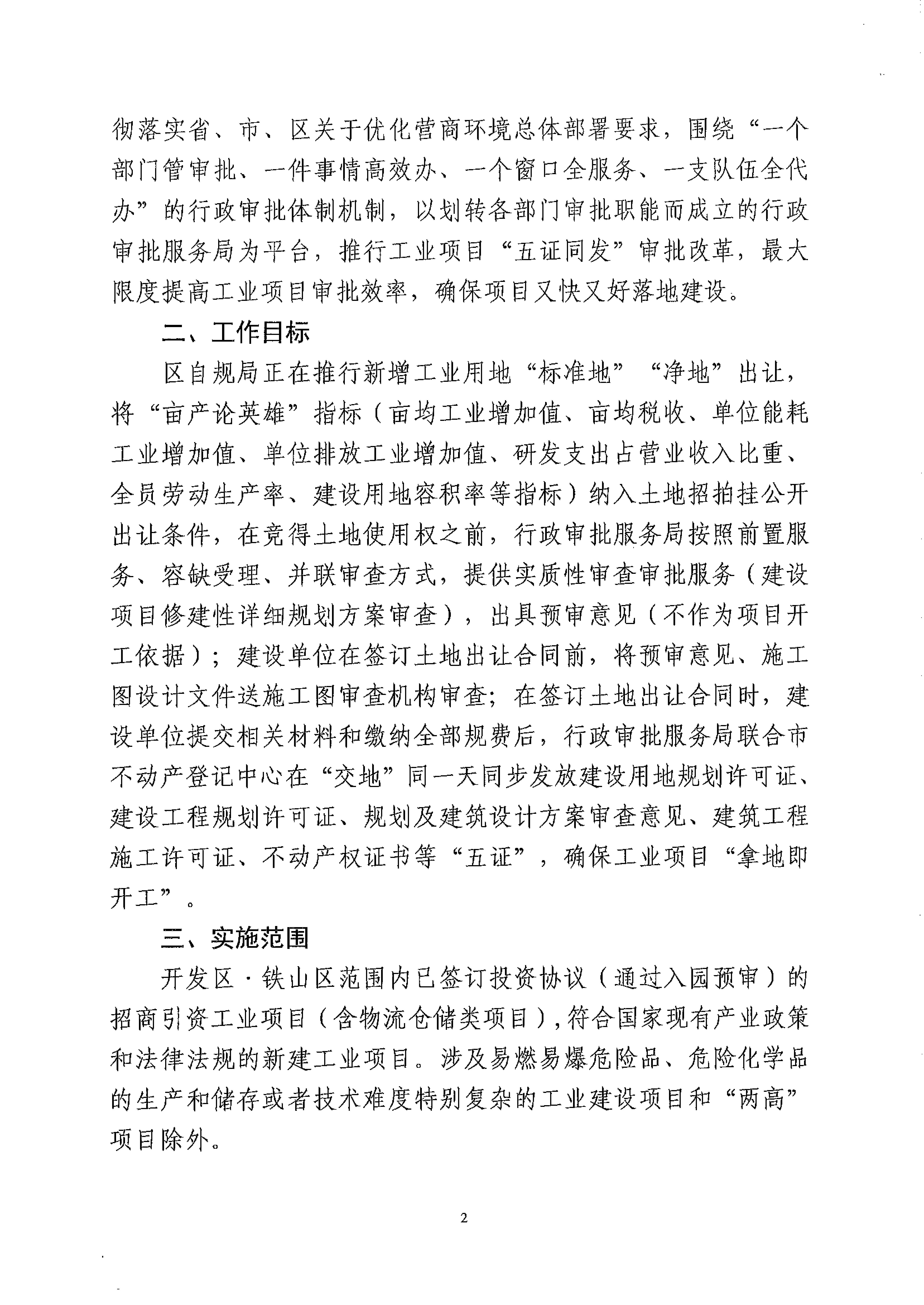 关于印发《开发区·铁山区工业项目“五证同发”审批改革实施方案》的通知