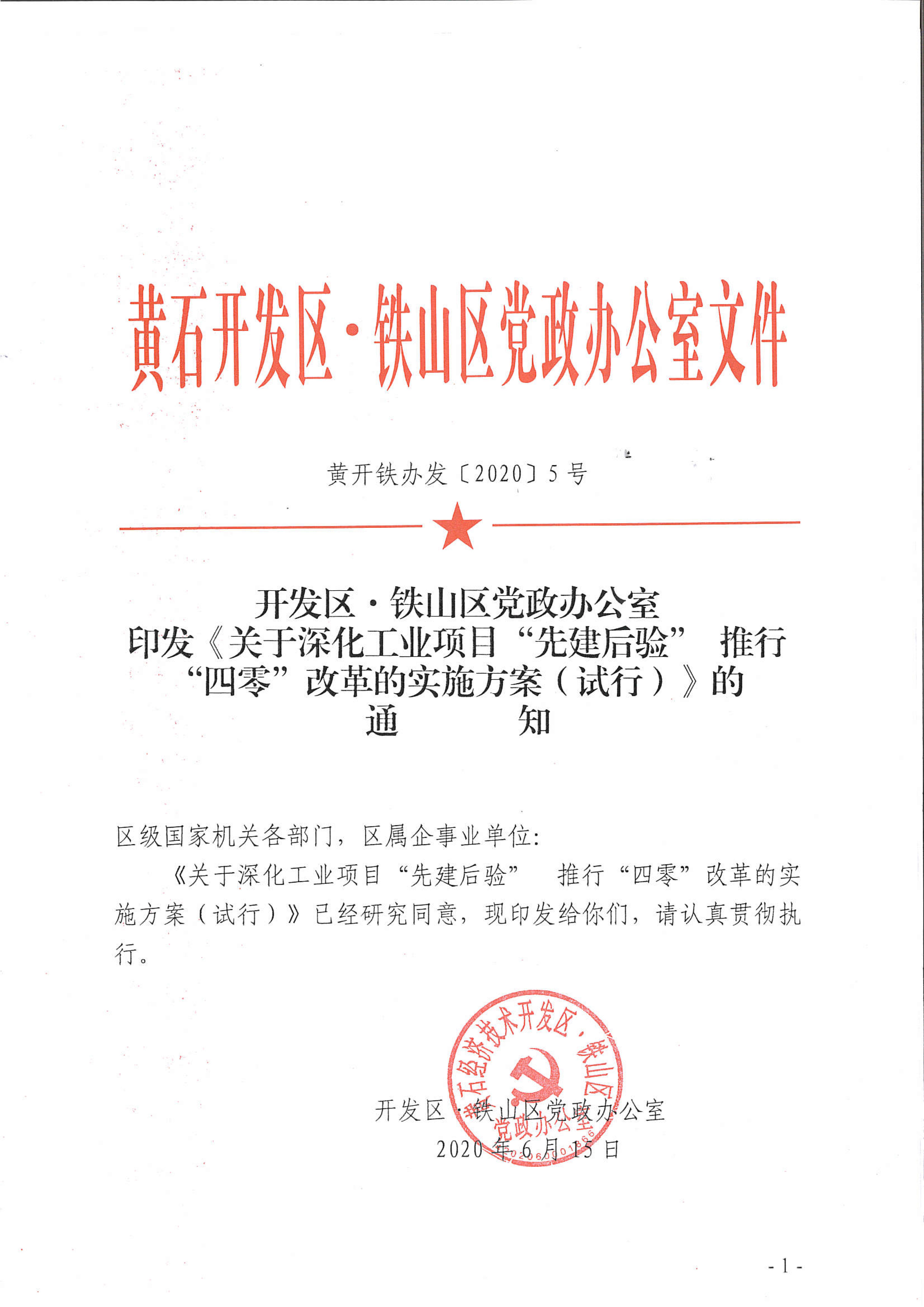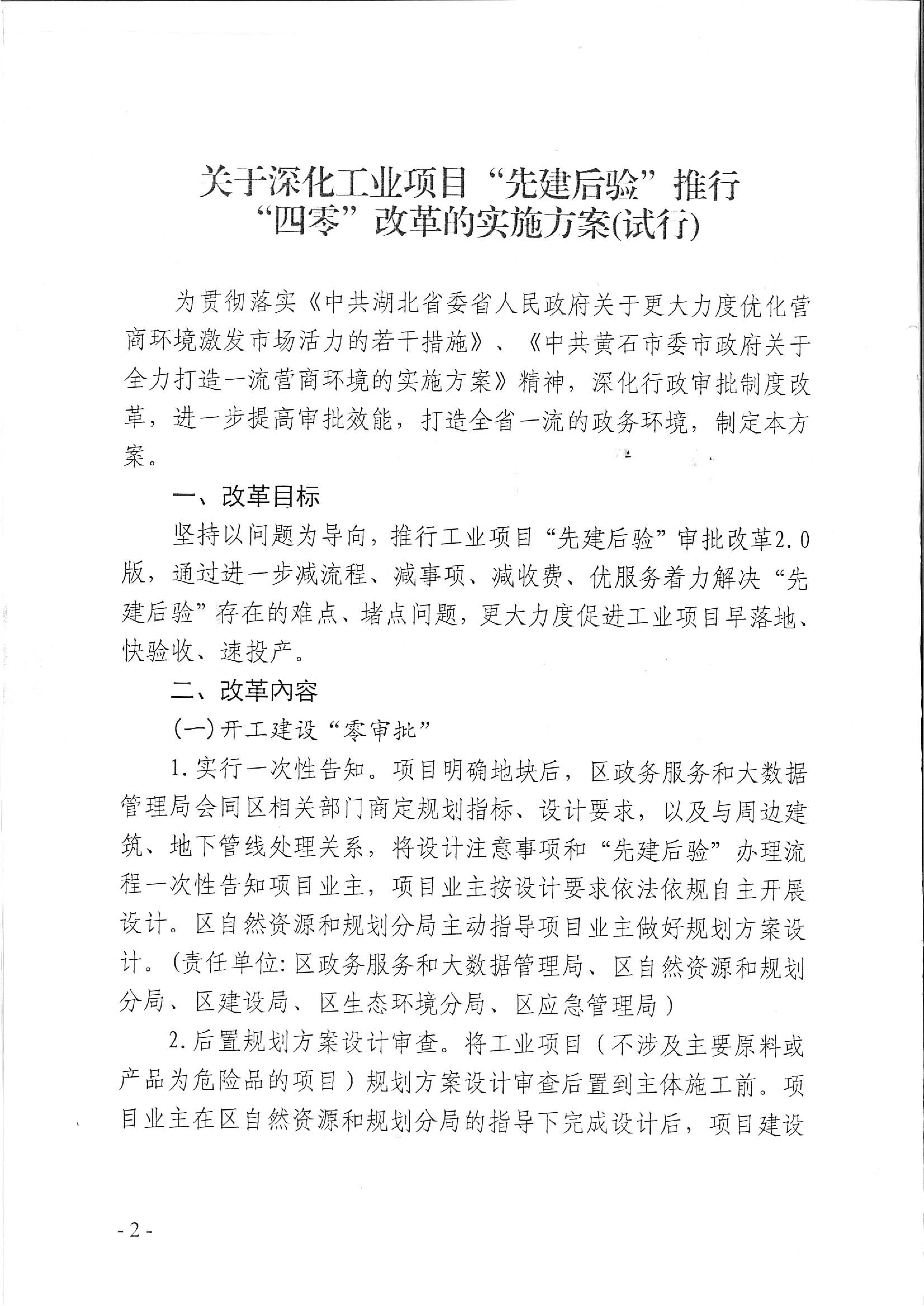 开发区·铁山区党政办公室 印发《关于深化工业项目“先建后验”推行“四零”改革的实施方案(试行)》的通知