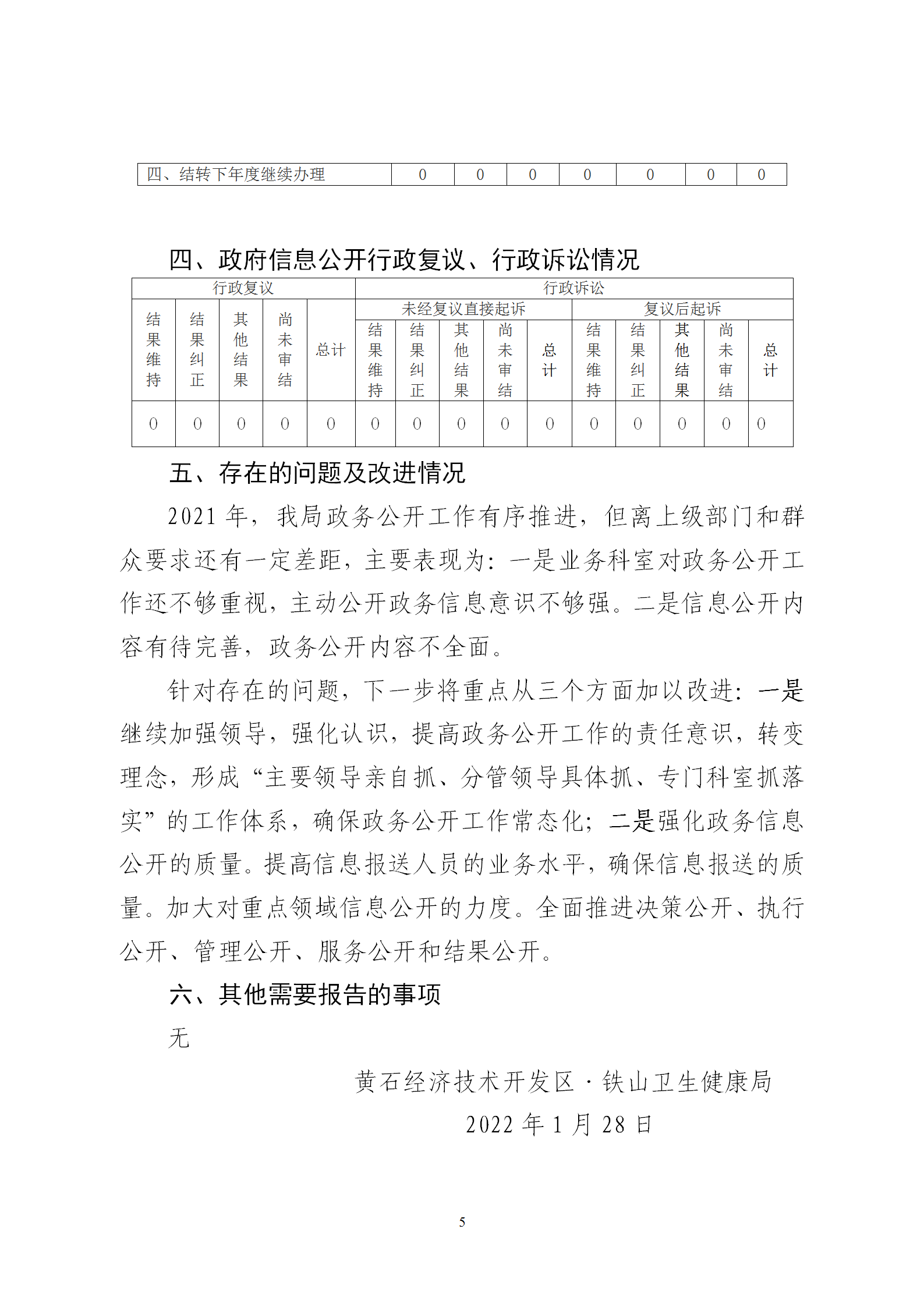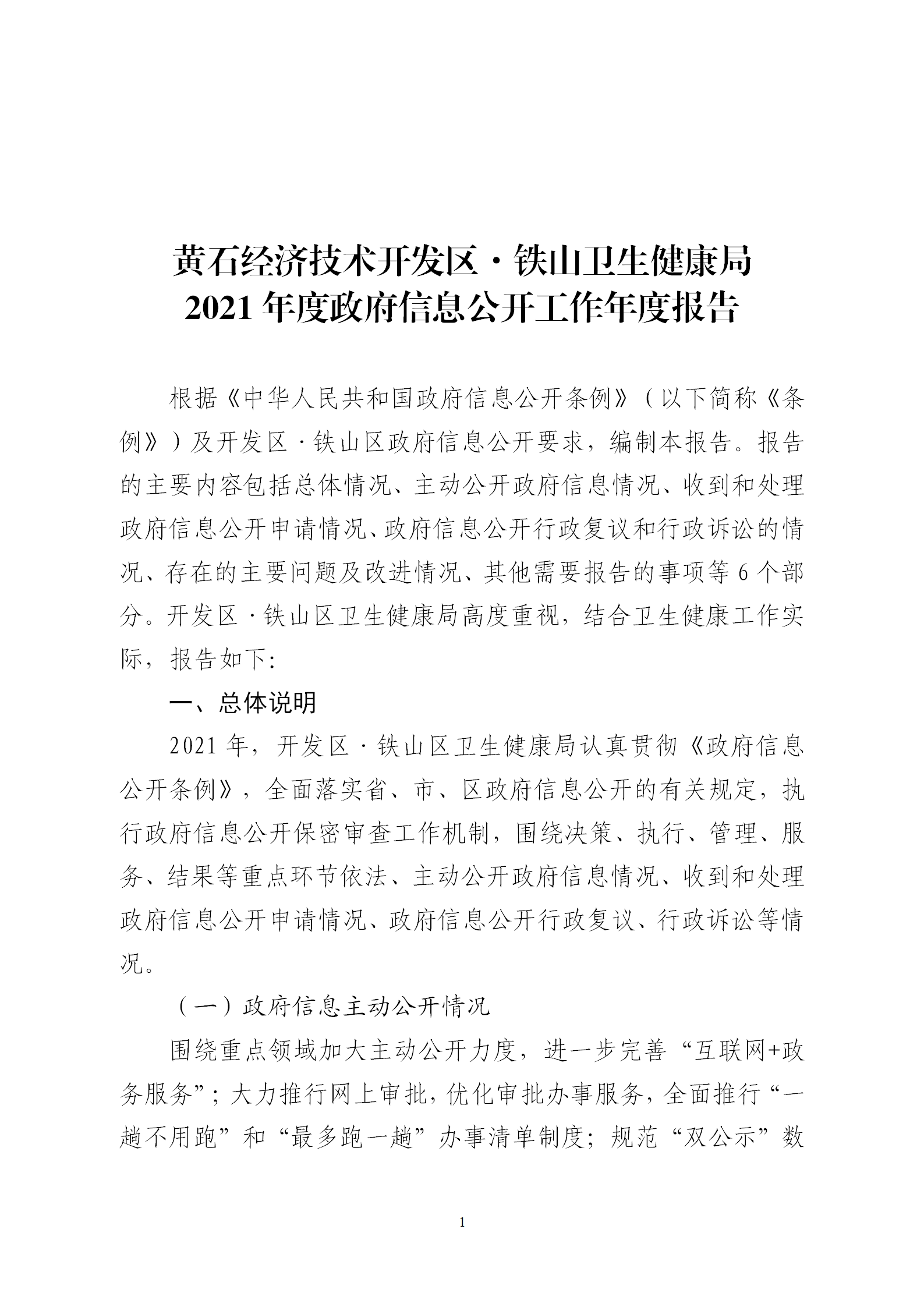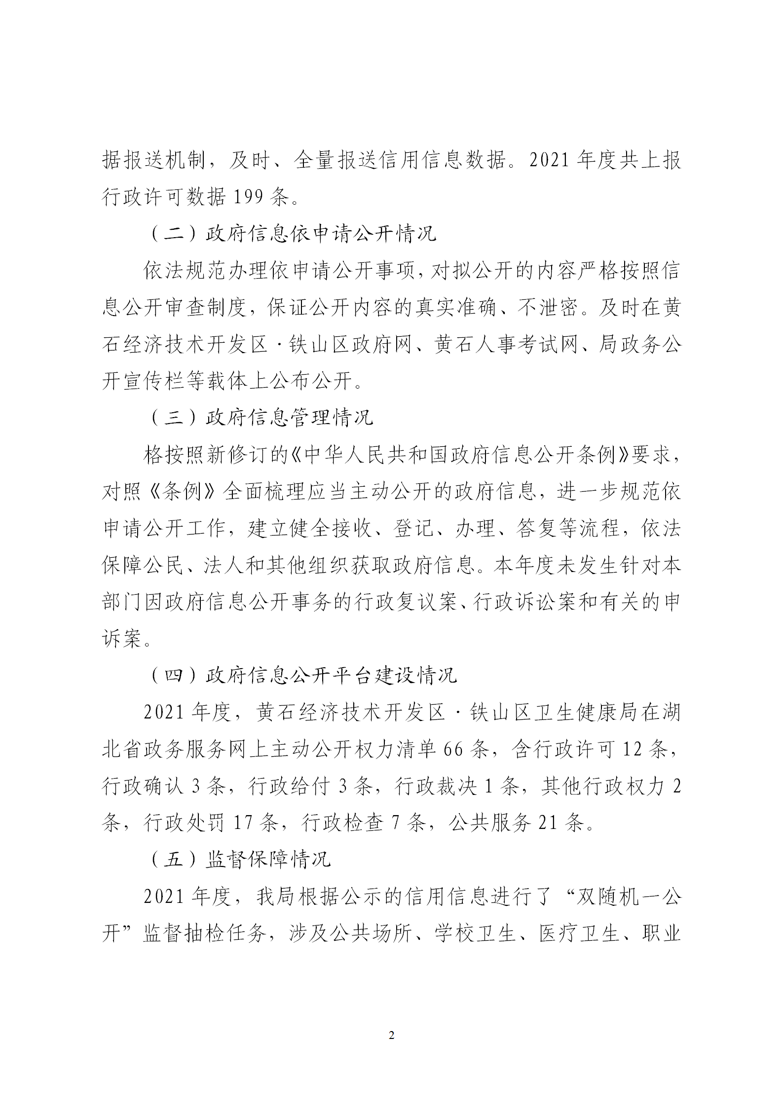 黄石经济技术开发区·铁山卫生健康局2021年度政府信息公开工作年度报告