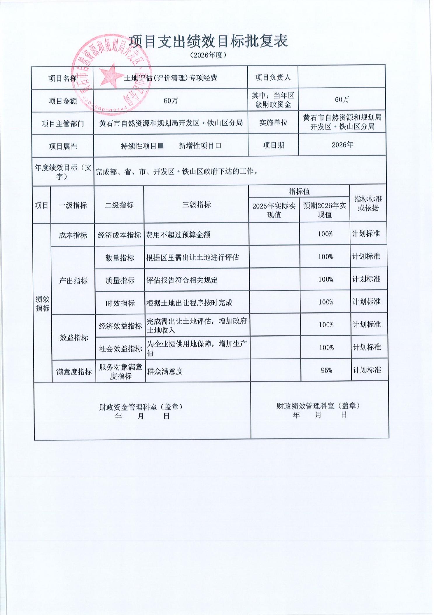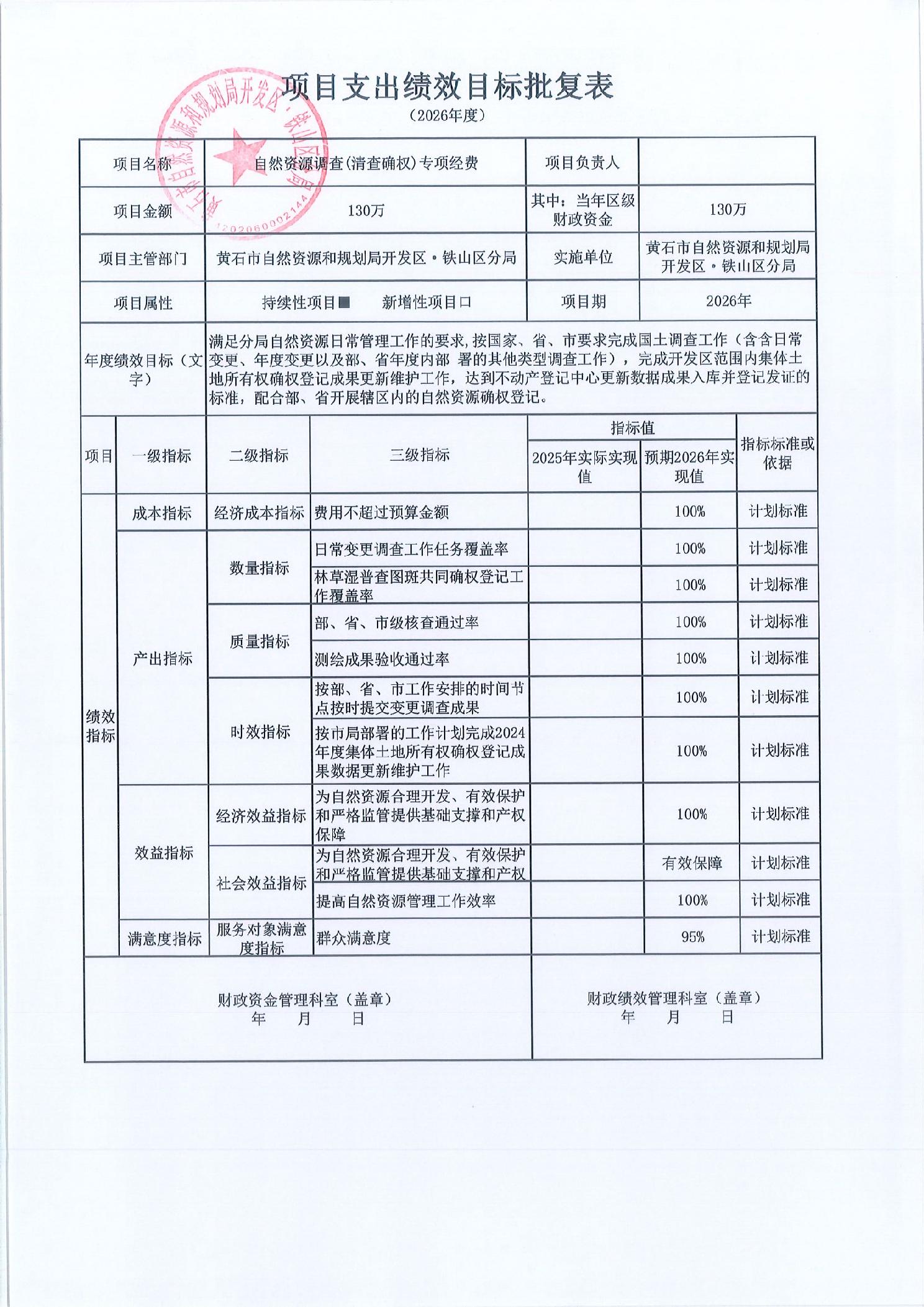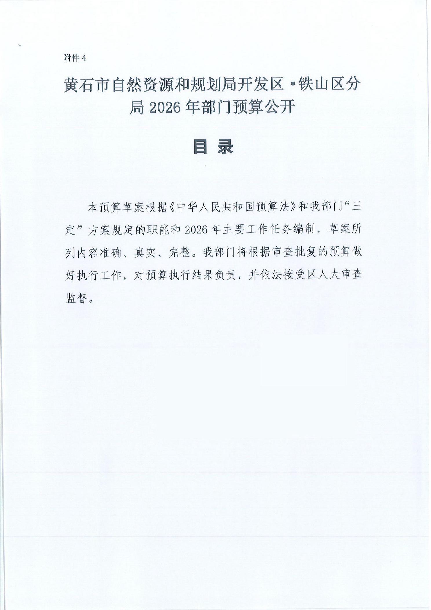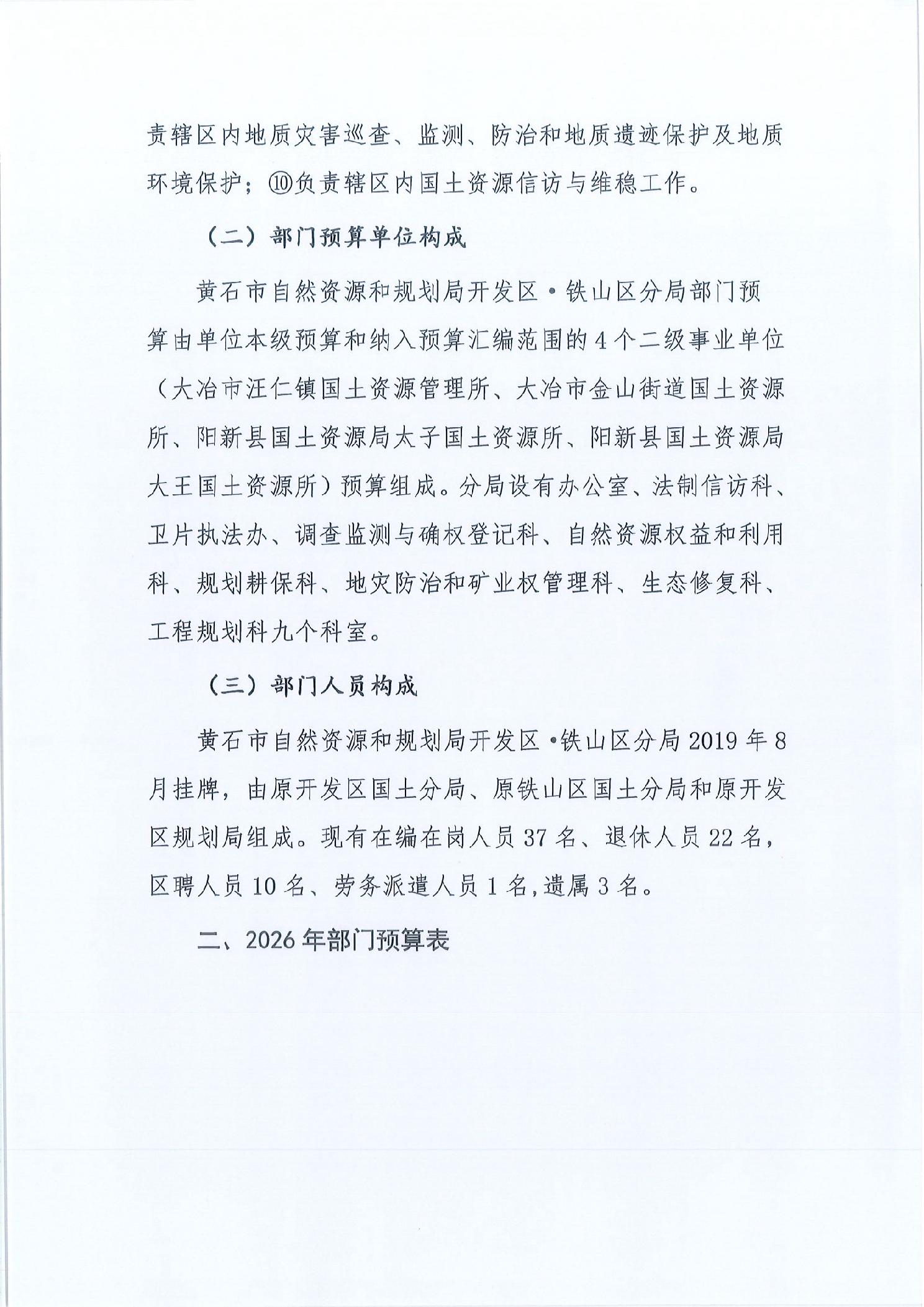 黄石市自然资源和规划局开发区·铁山区分局2026年部门预算公开