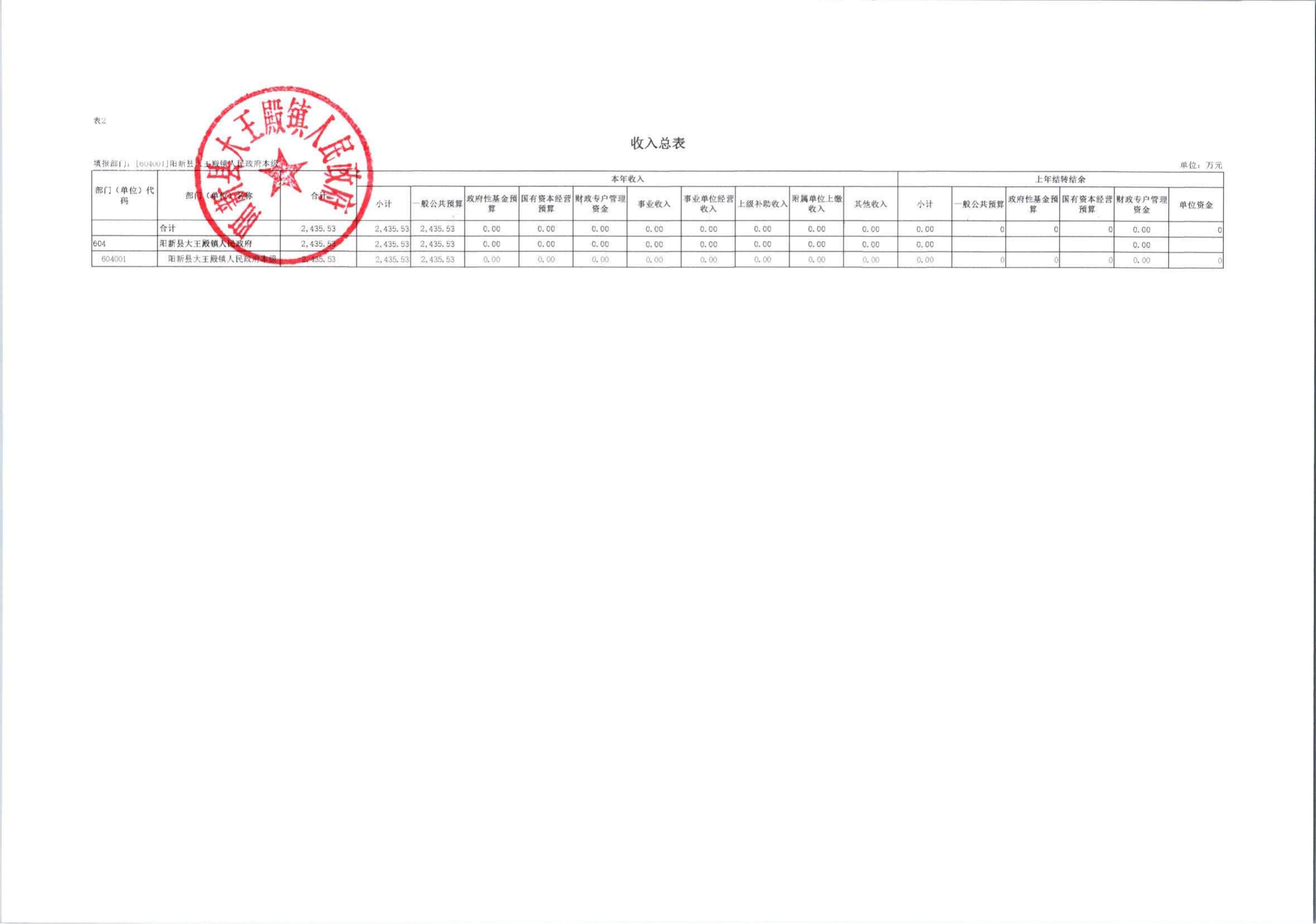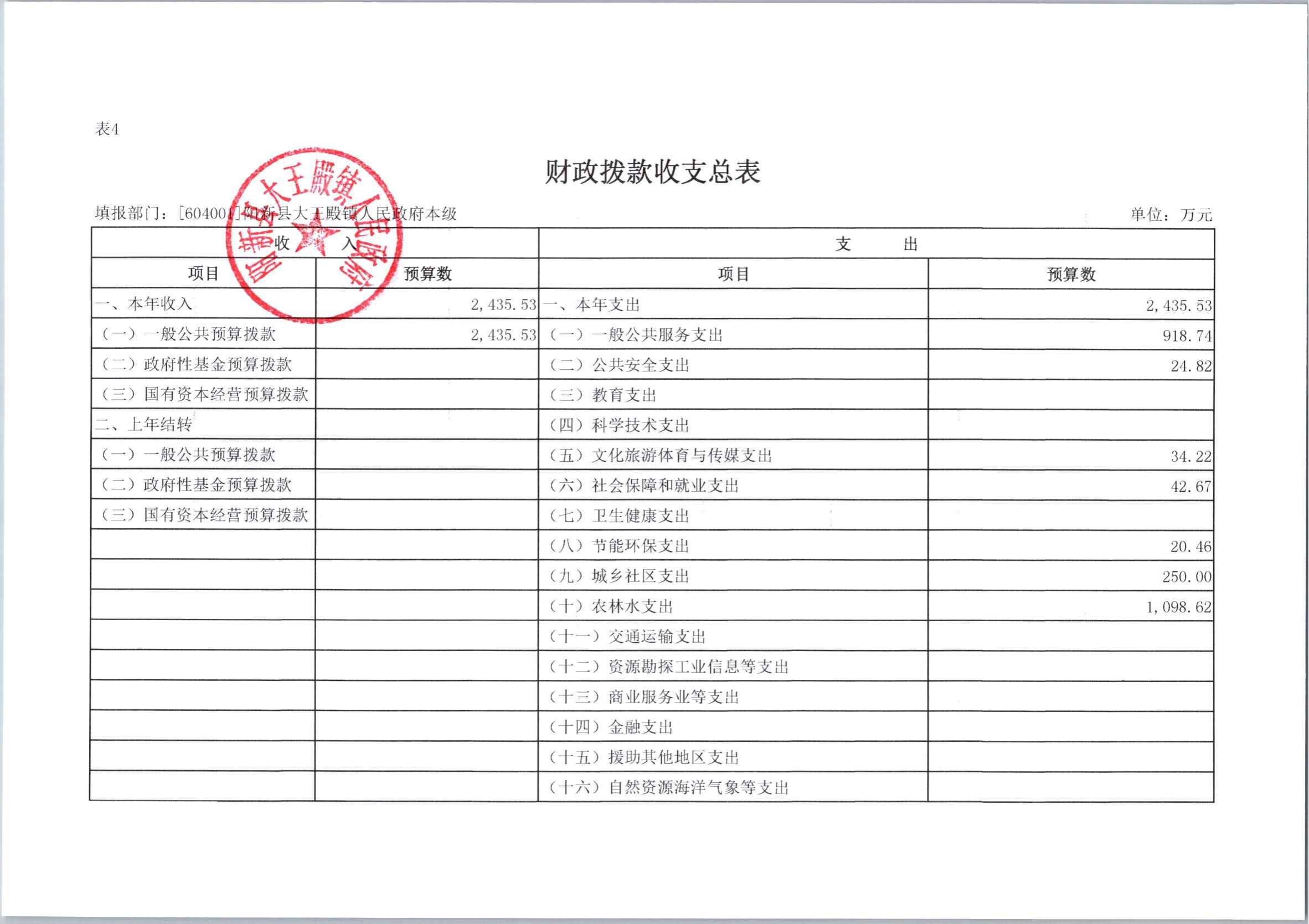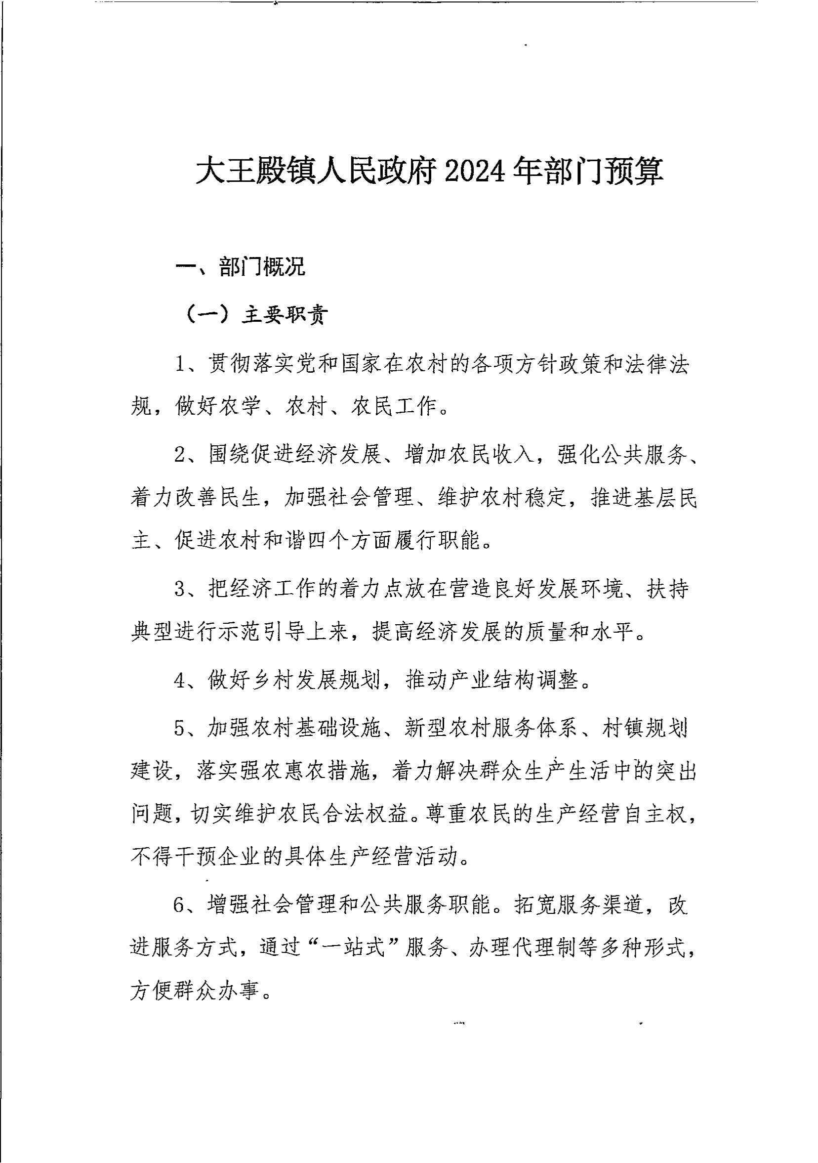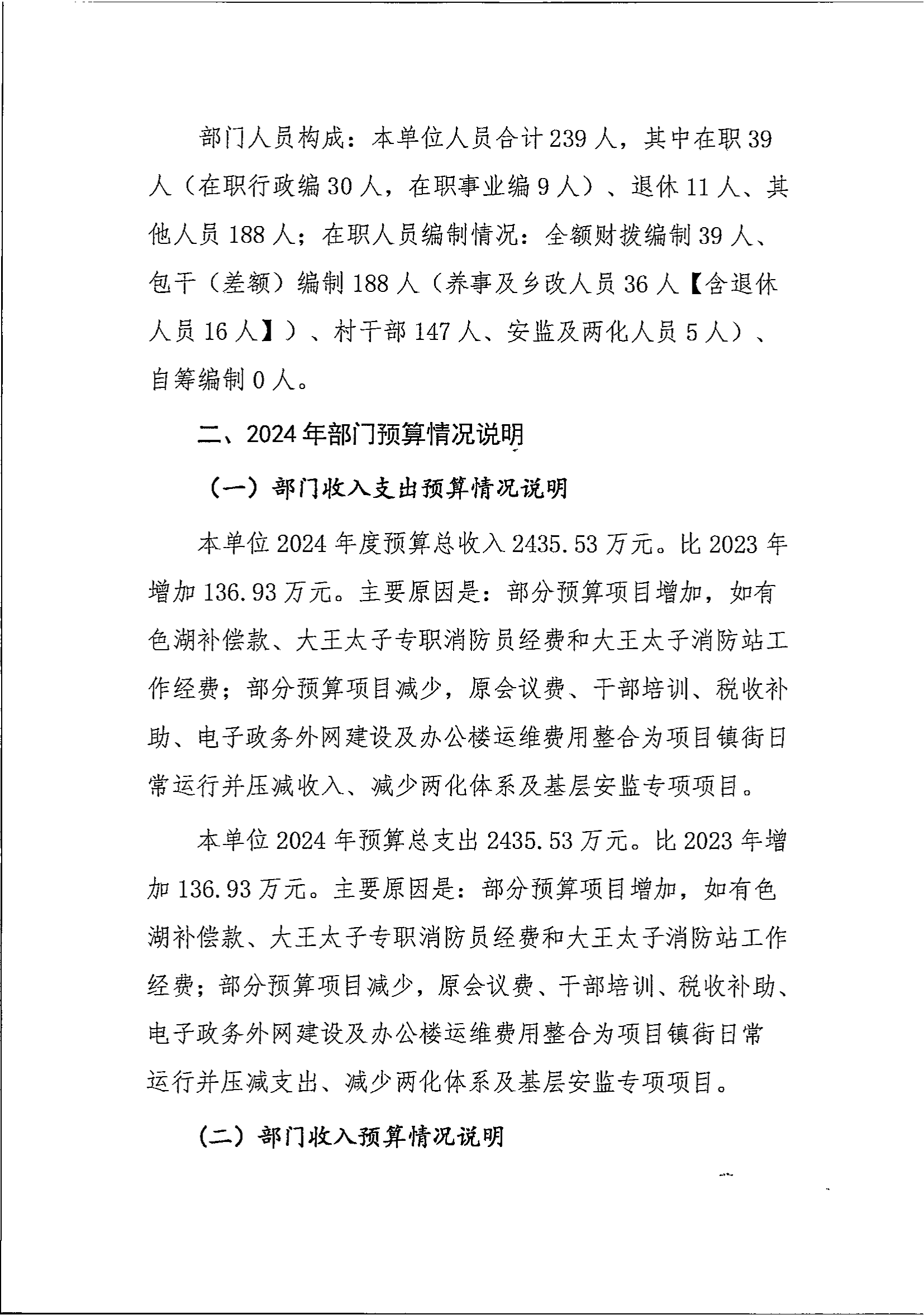 大王镇2024年部门预算公开