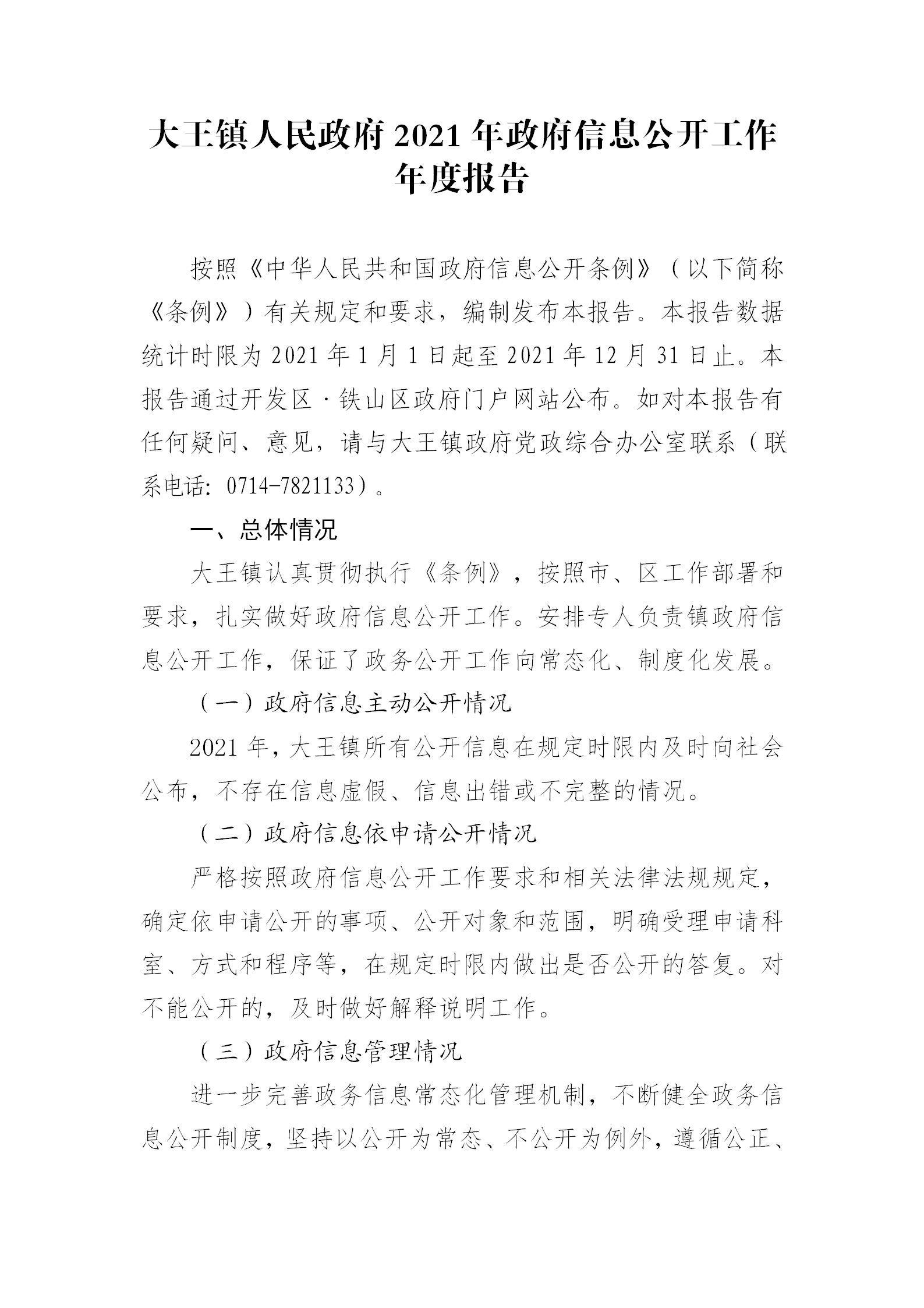 大王镇人民政府2021年政府信息公开工作年度报告(1)