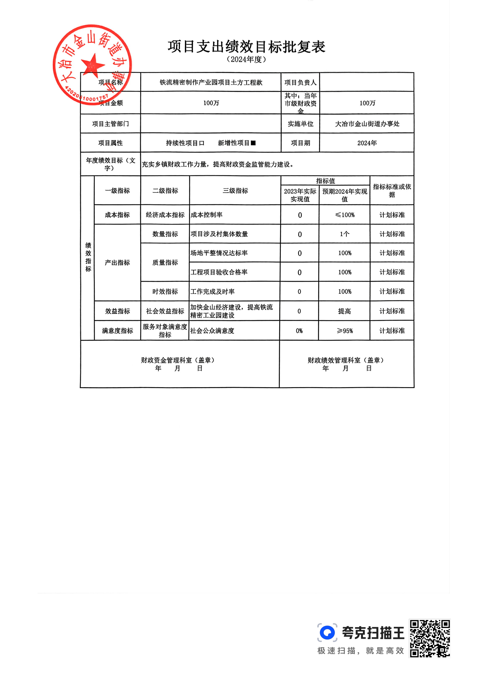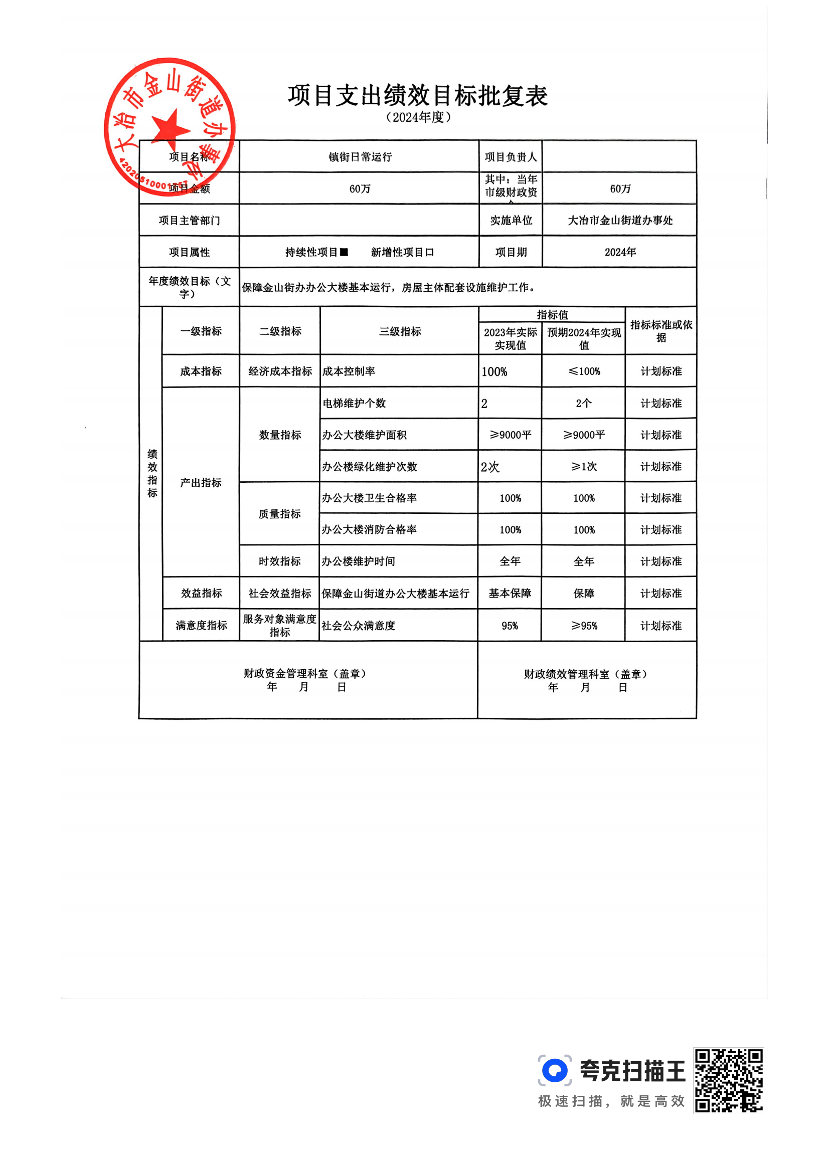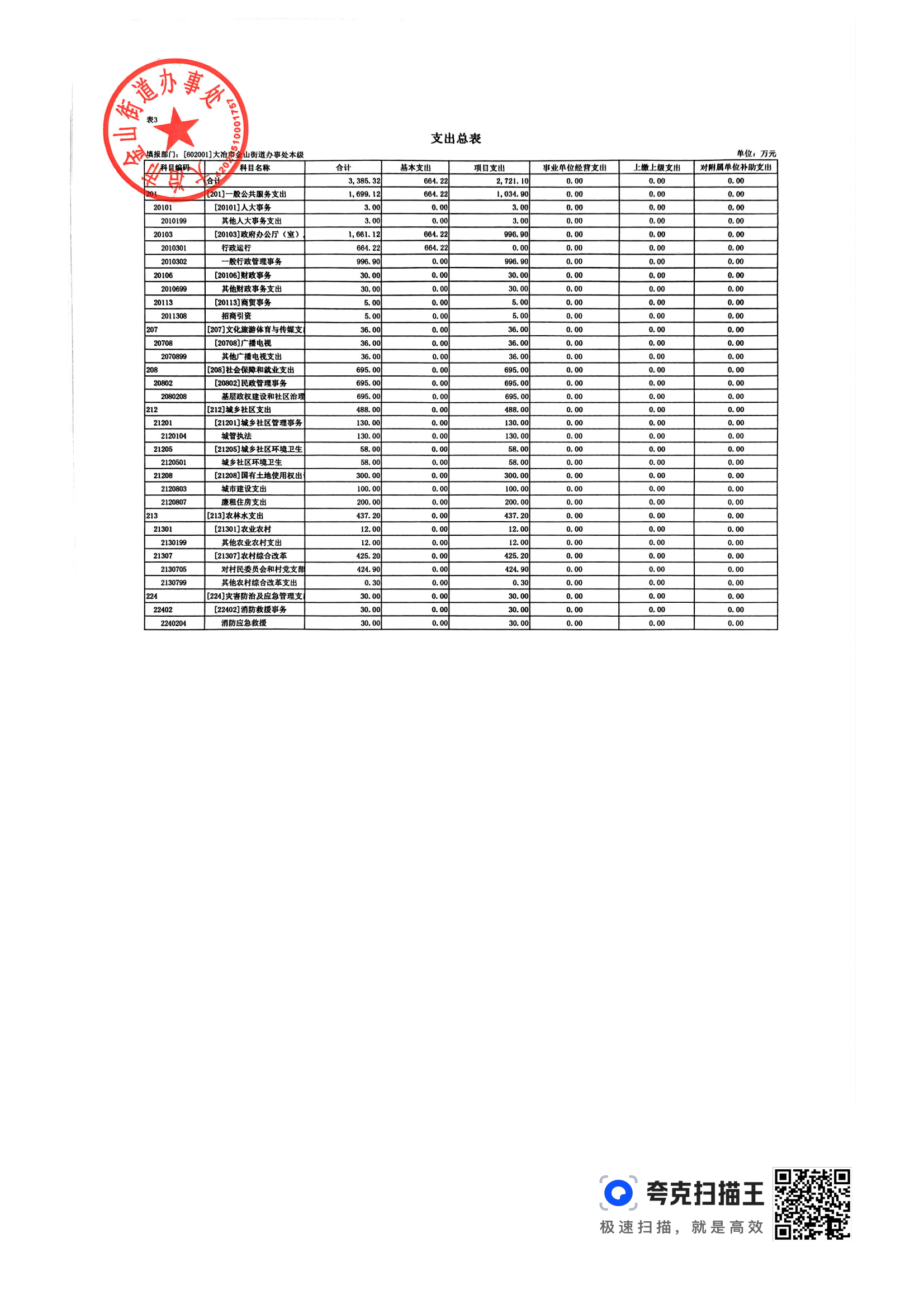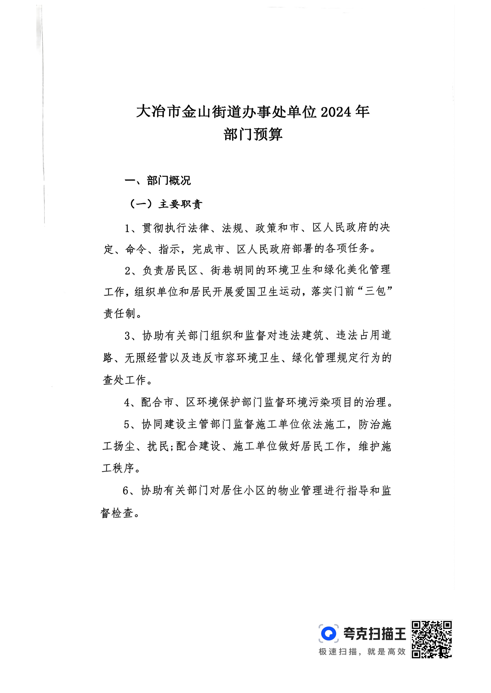 金山街道2024年部门预算公开