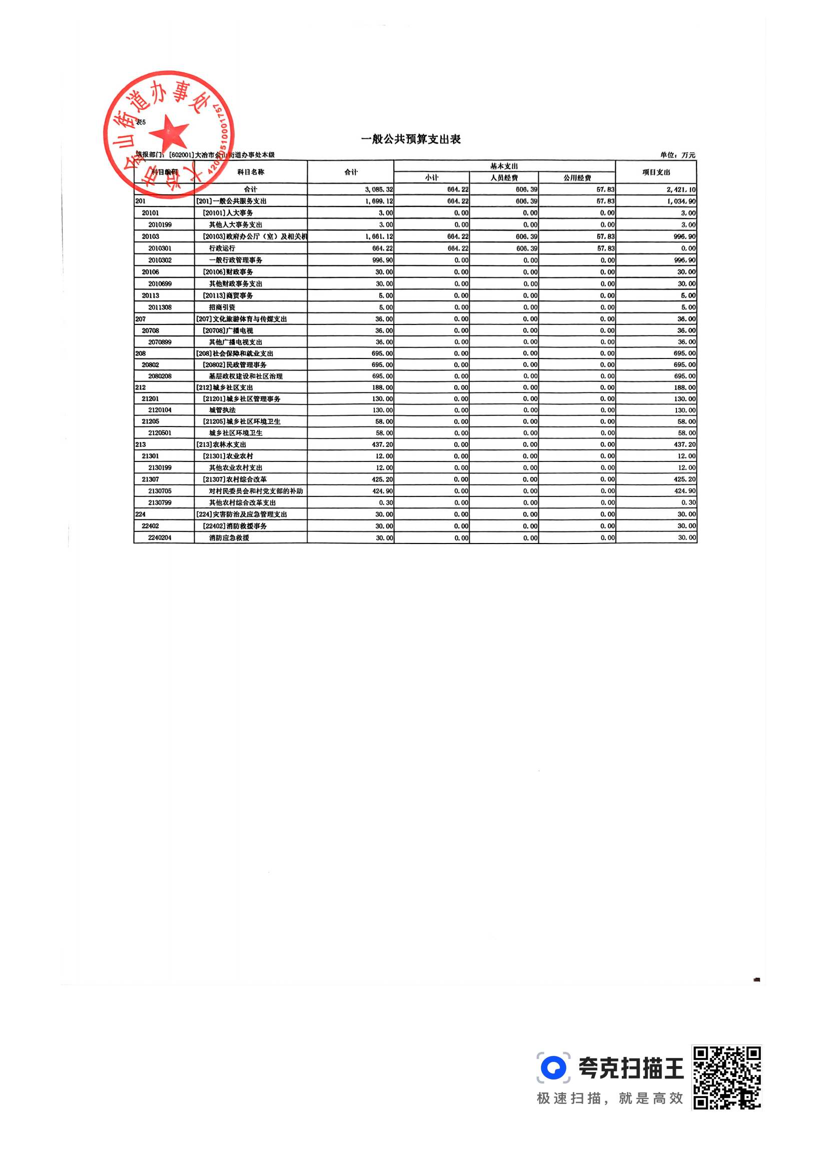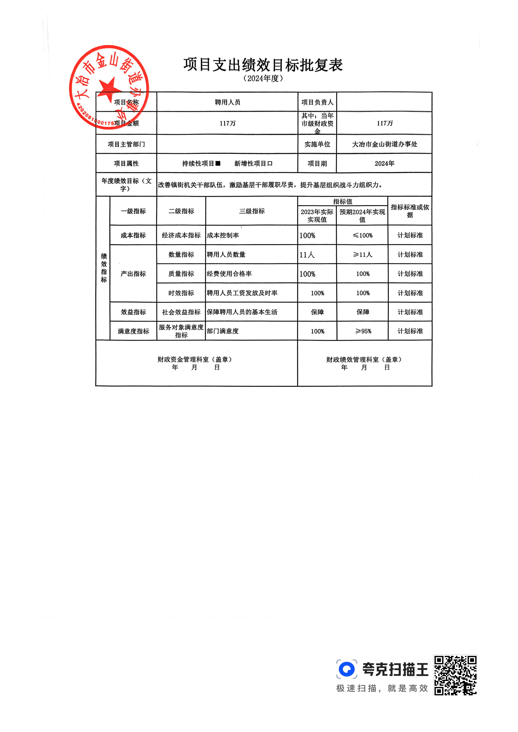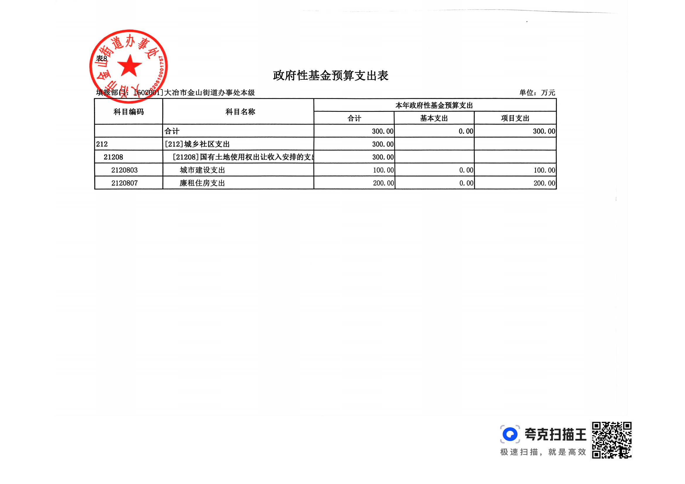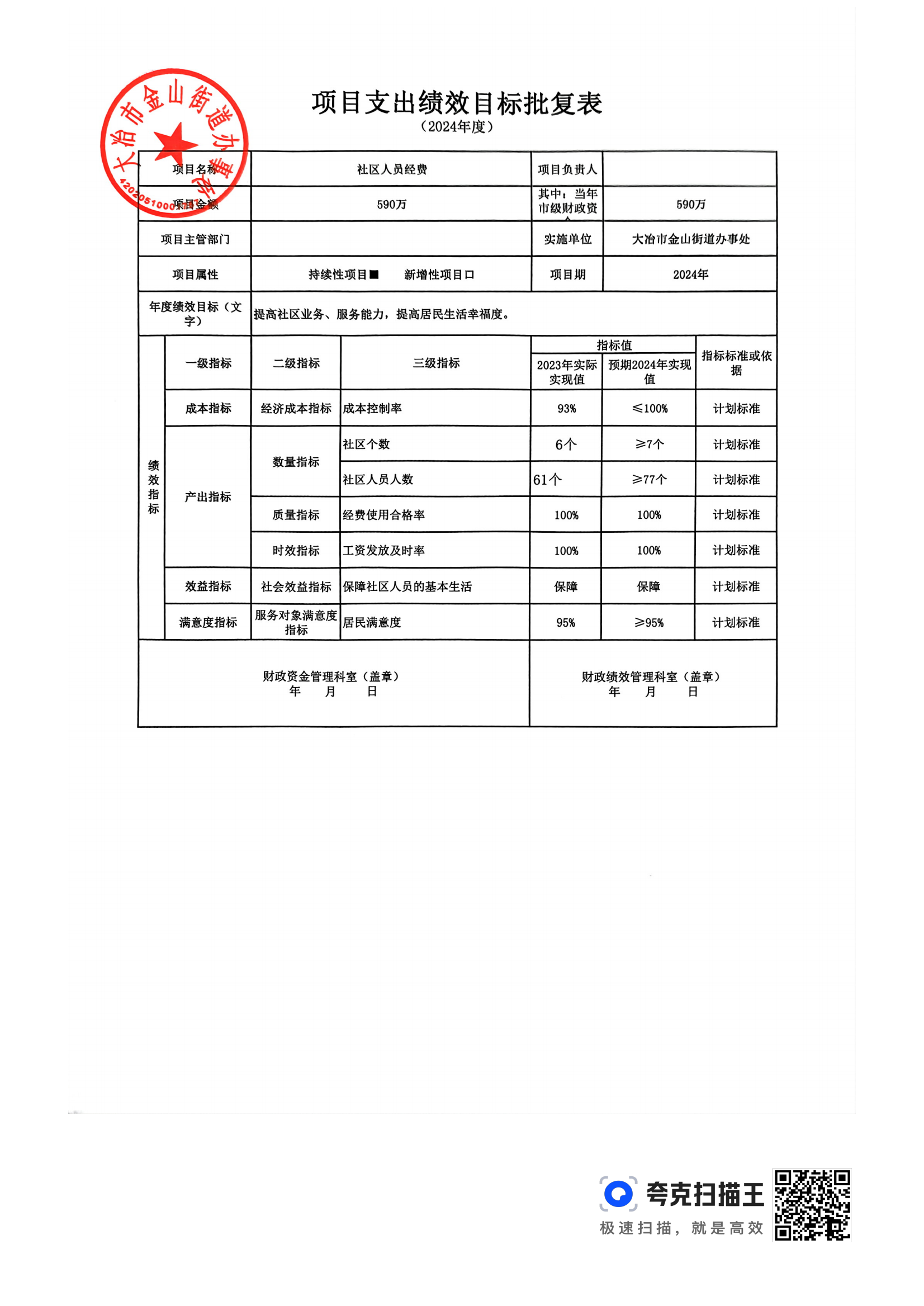 金山街道2024年部门预算公开