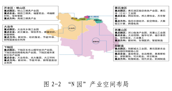 “十四五”期间,我市按照整体统筹、错位发展、协同联动的原则,结合黄石市工业基础,大力发展块状经济,加快形成区域协调发展的“四区N园”产业空间发展新格局。
