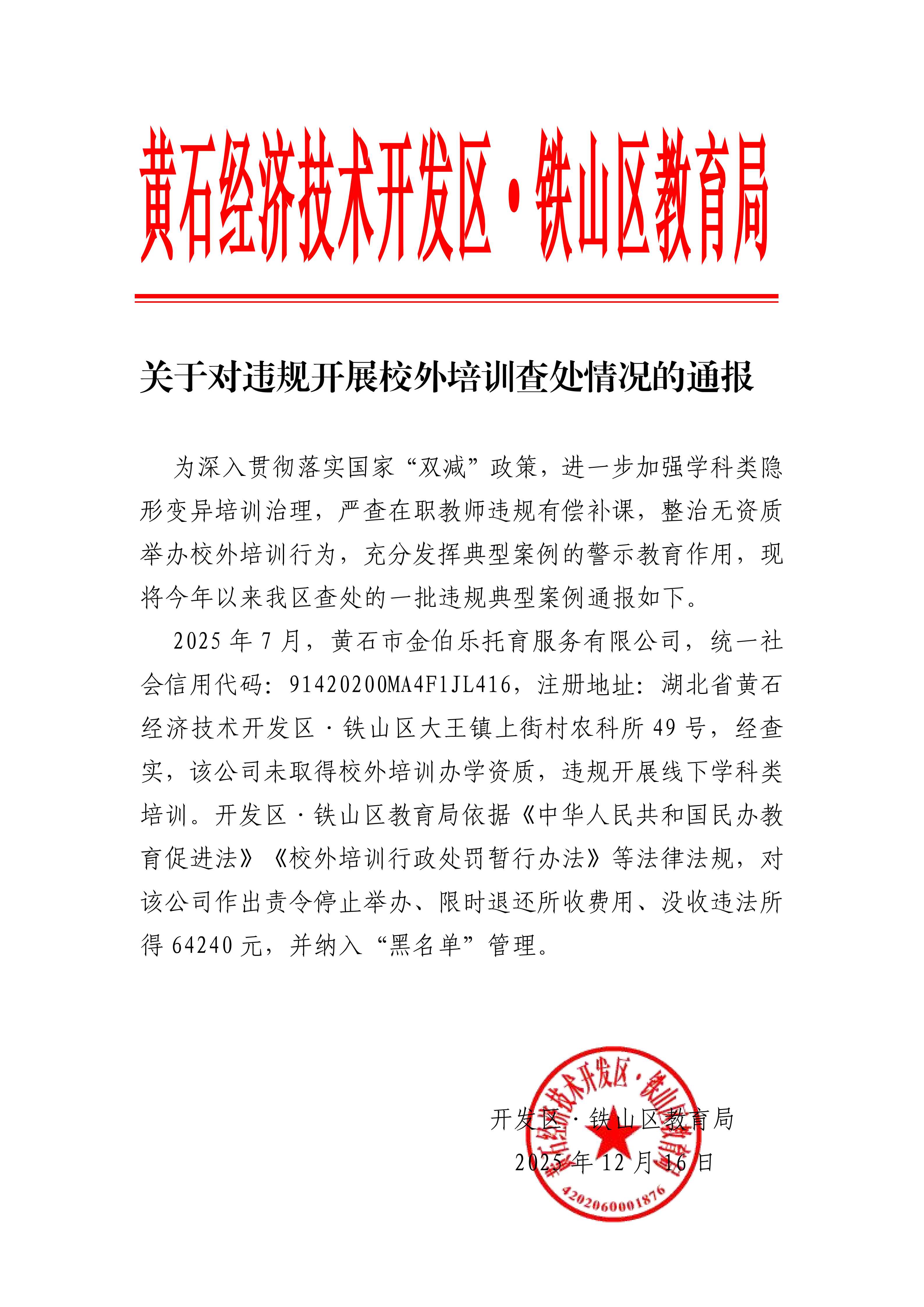 关于对违规开展校外培训查处情况的通报