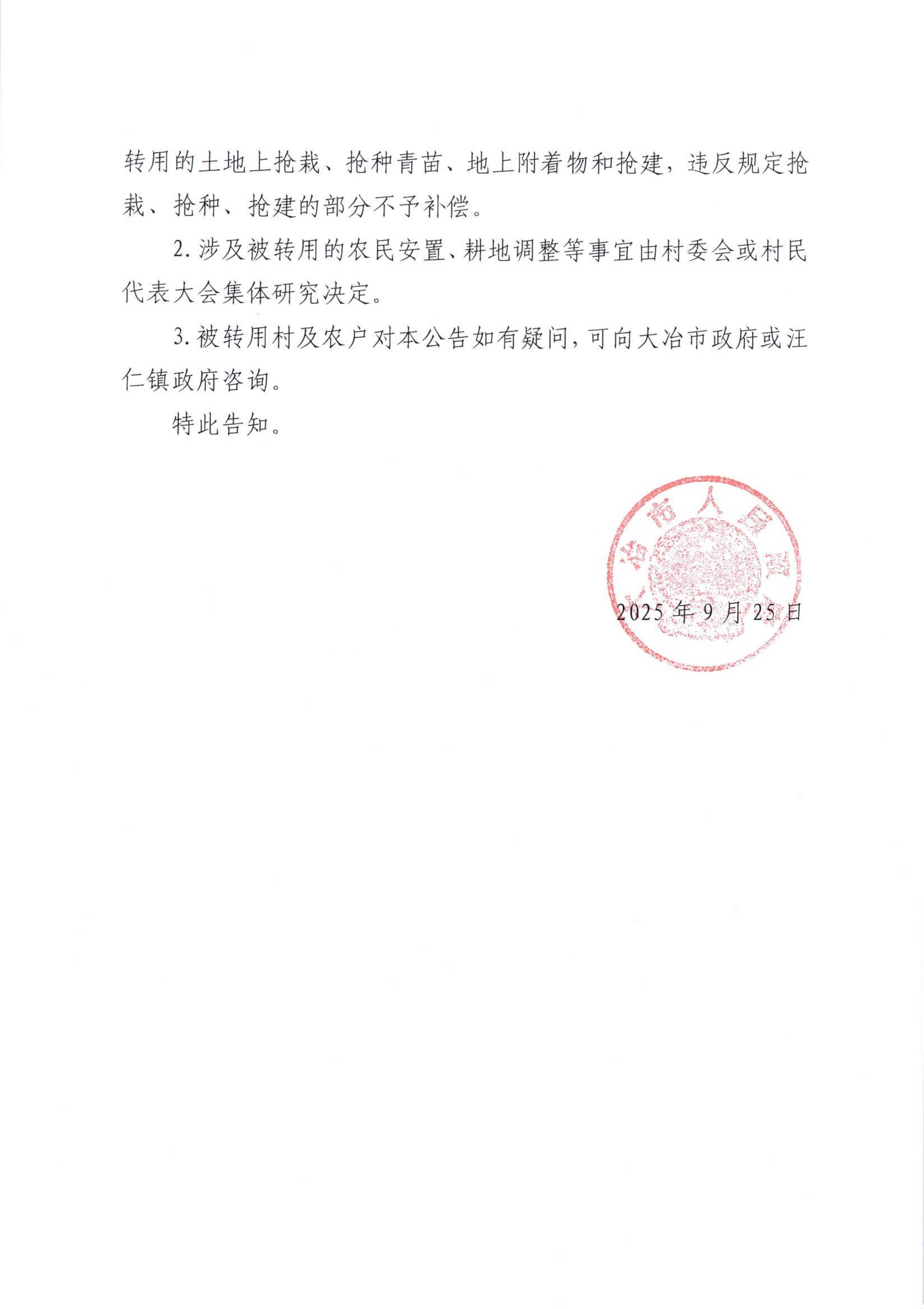 农用地转用公告(汪仁镇四连山村)