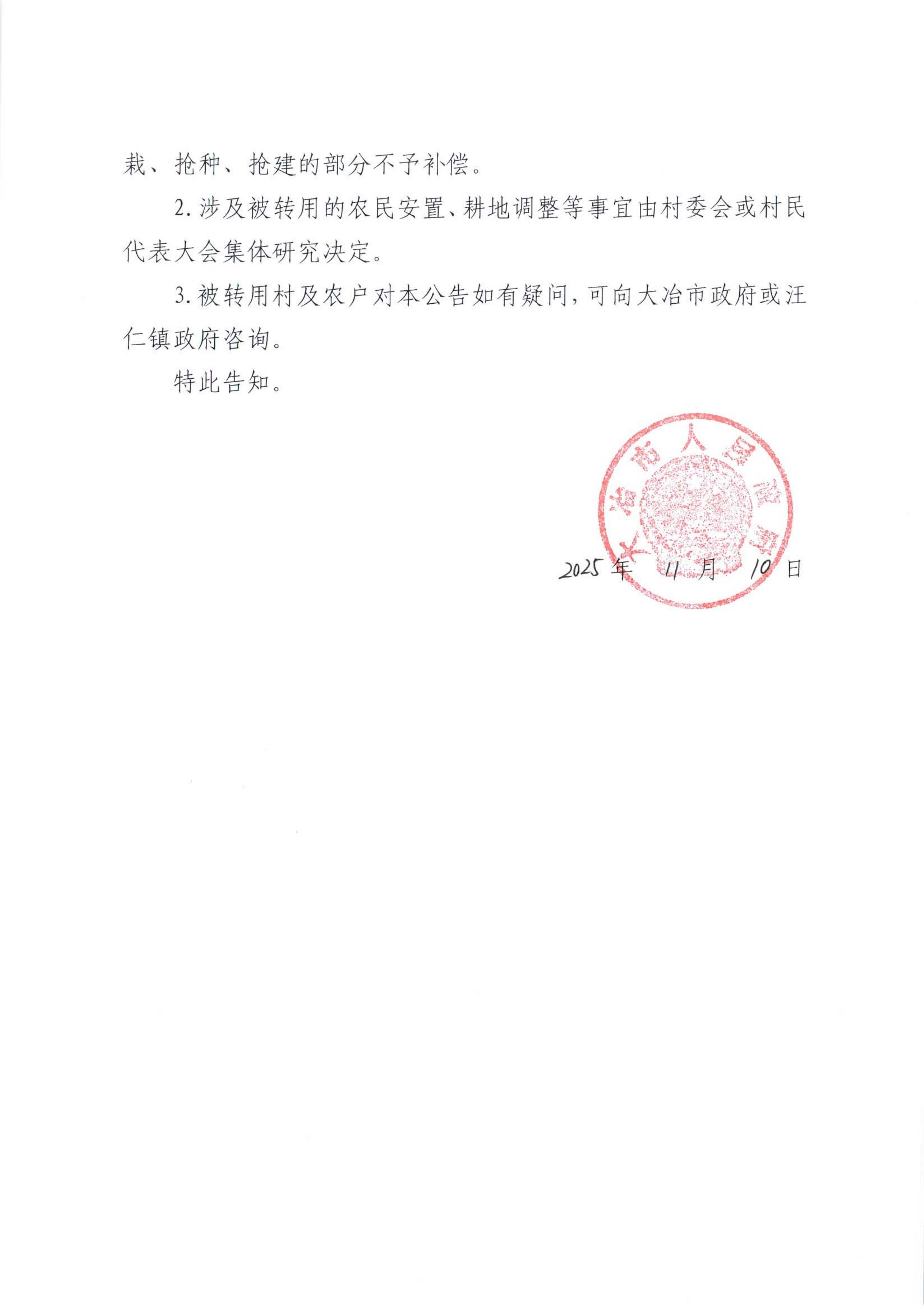 农用地转用公告(汪仁镇马鞍山村)