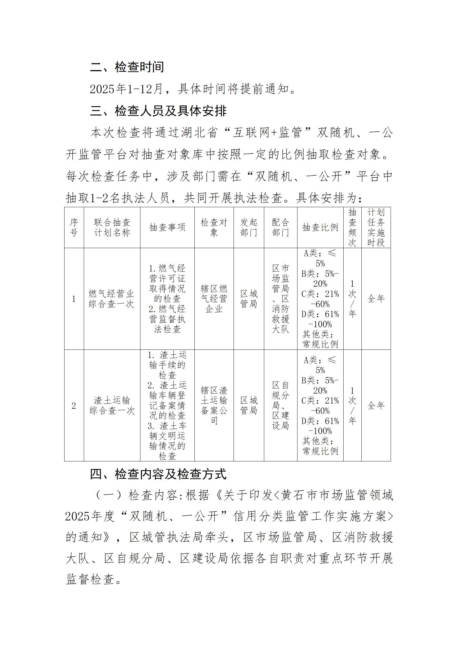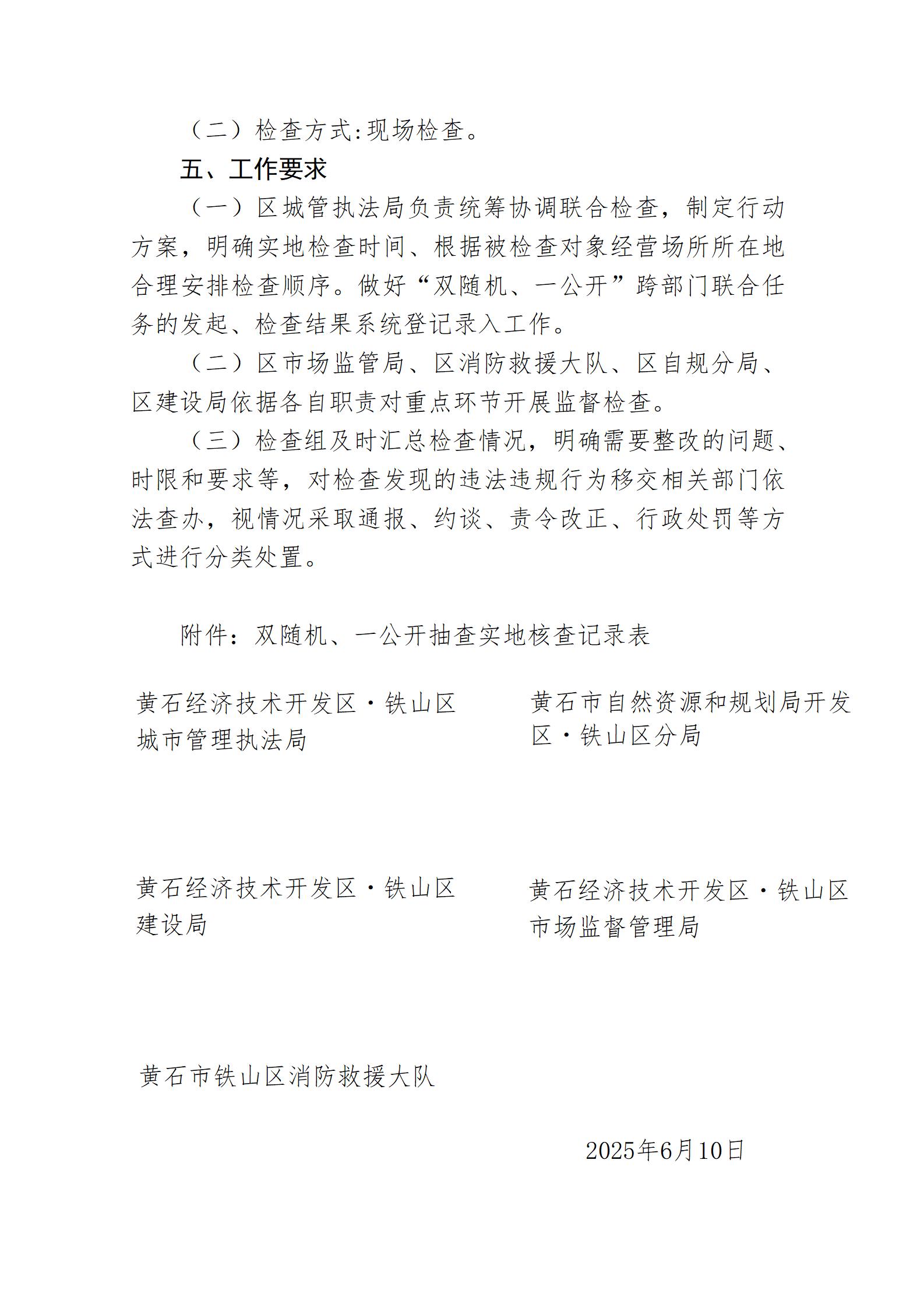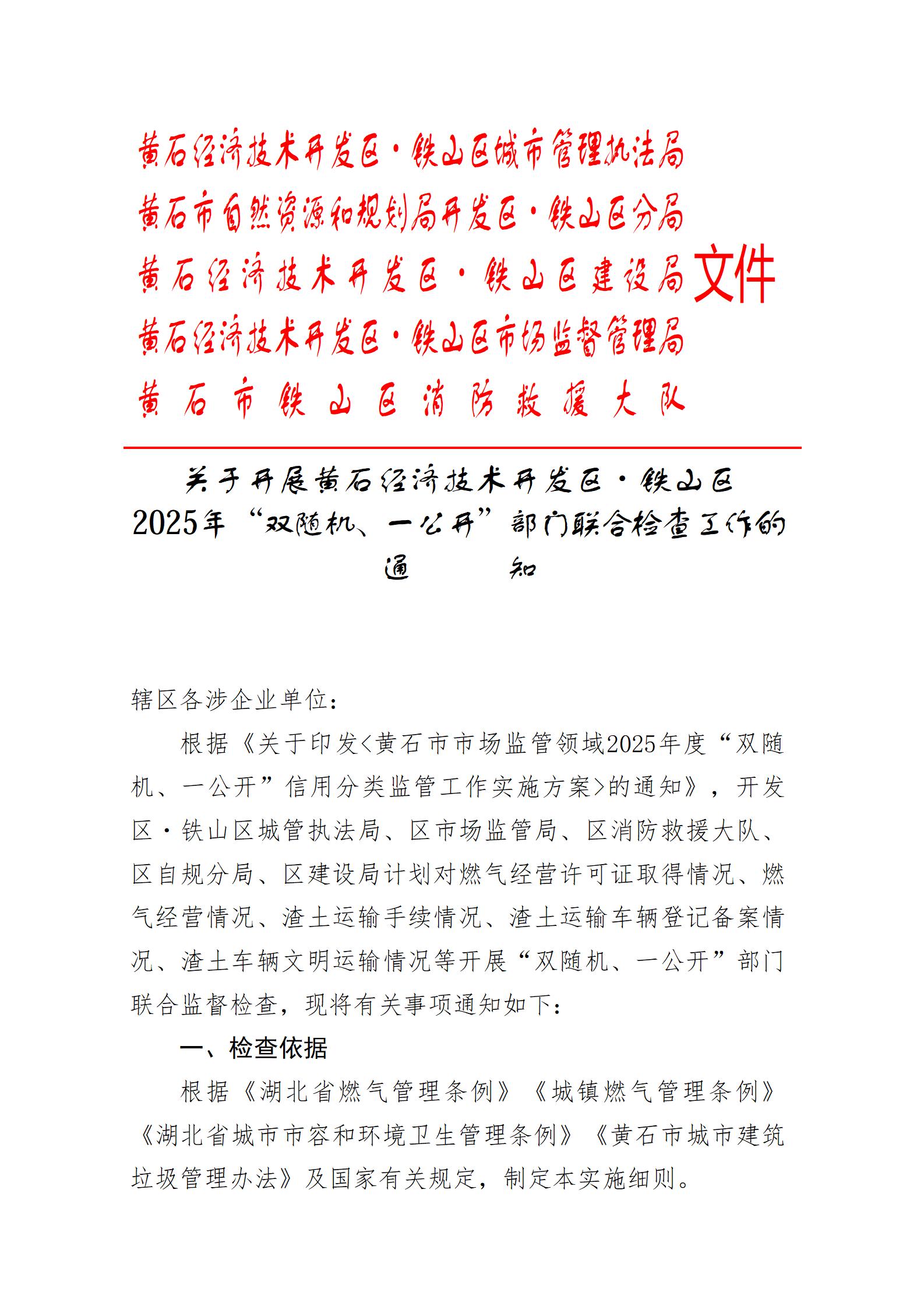 关于开展黄石经济技术开发区·铁山区 2025年“双随机、一公开”部门联合检查工作的通知