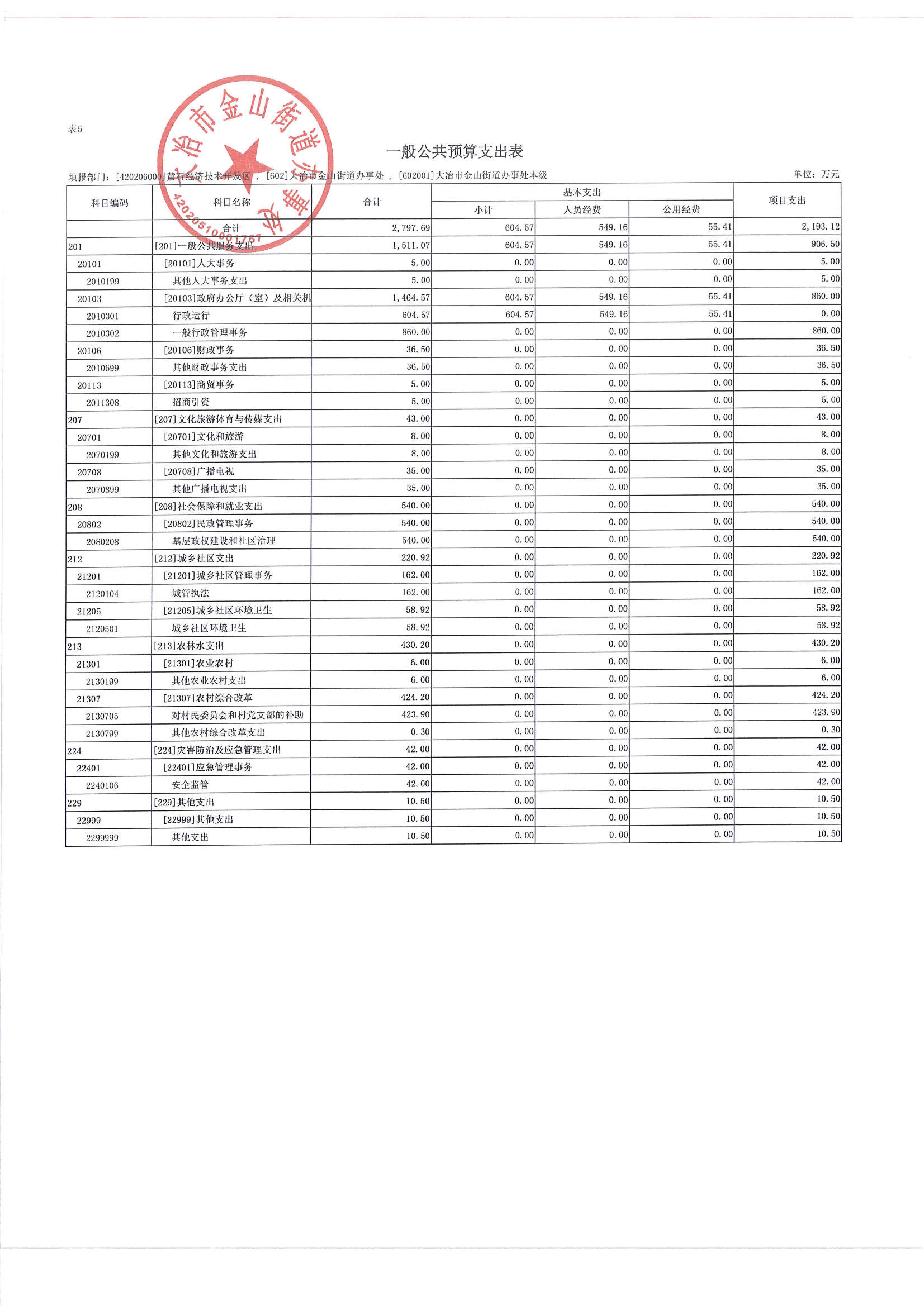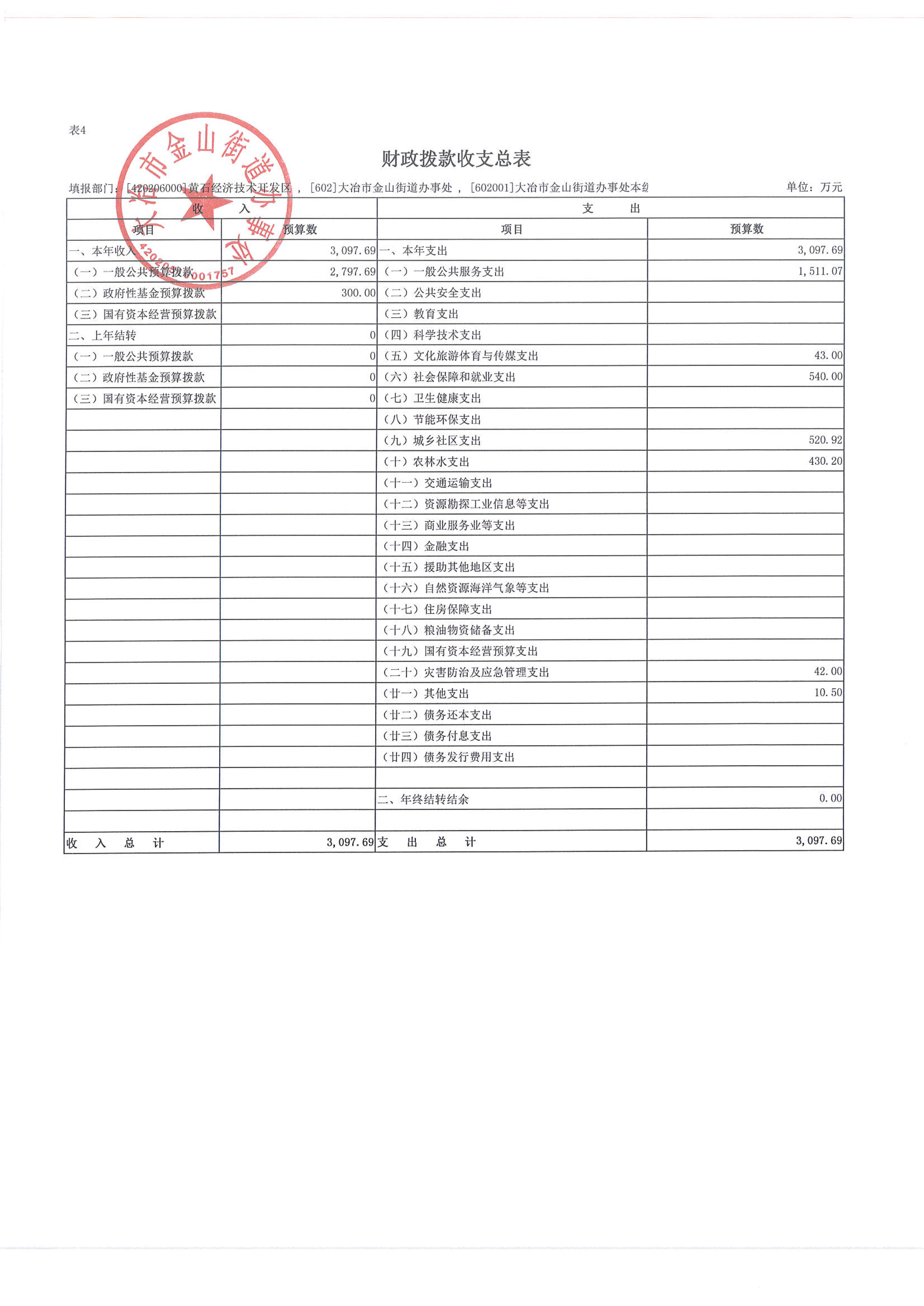 金山街道2023年部门预算公开