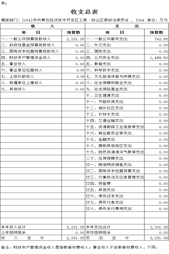 从预算构成单位来看,开发区党工委·铁山区委政法委为一级行政预算单位。下设1个全额拨款事业单位即综治中心。