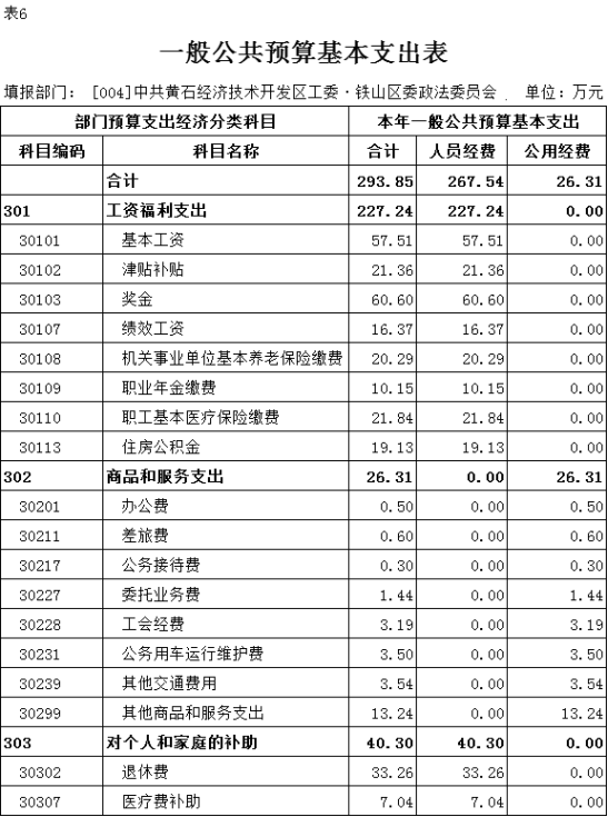 6、基本支出:指为保障机构正常运转、完成日常工作任务而发生的人员支出和公用支出。