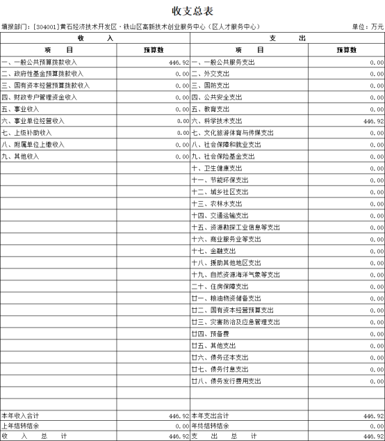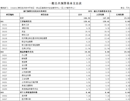 黄石经济技术开发区·铁山区高新技术创业服务中心单位2026年部门预算
