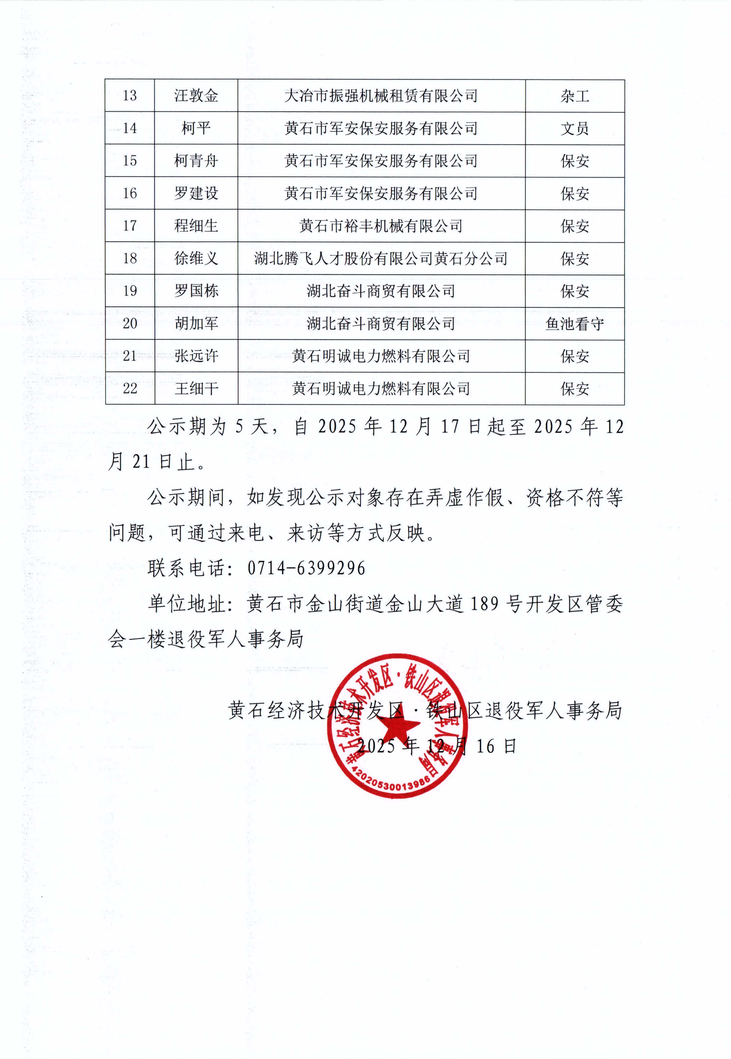 黄石经济技术开发区·铁山区2025年度 “两参”退役人员“两个补齐”审核名单公示