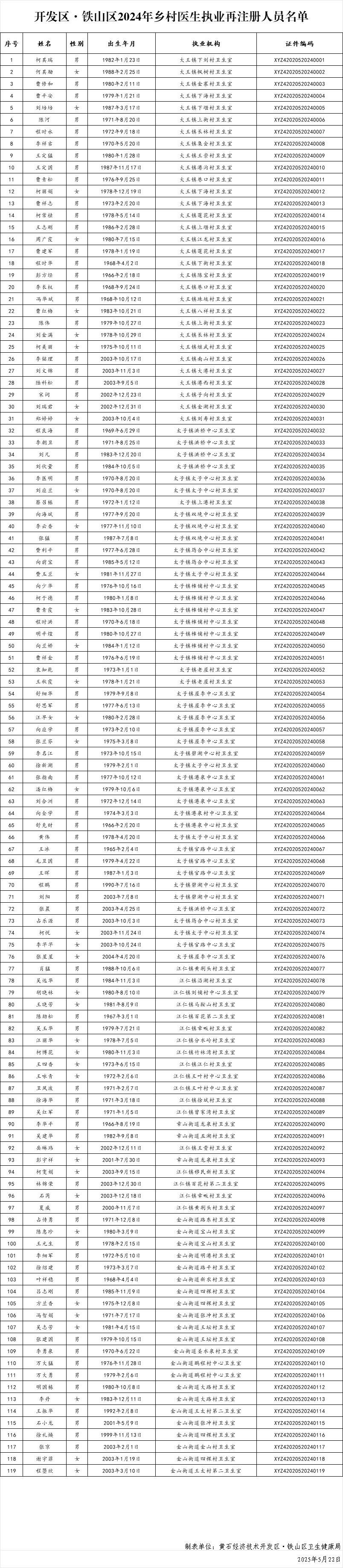 开发区·铁山区2024年乡村医生执业再注册人员名单