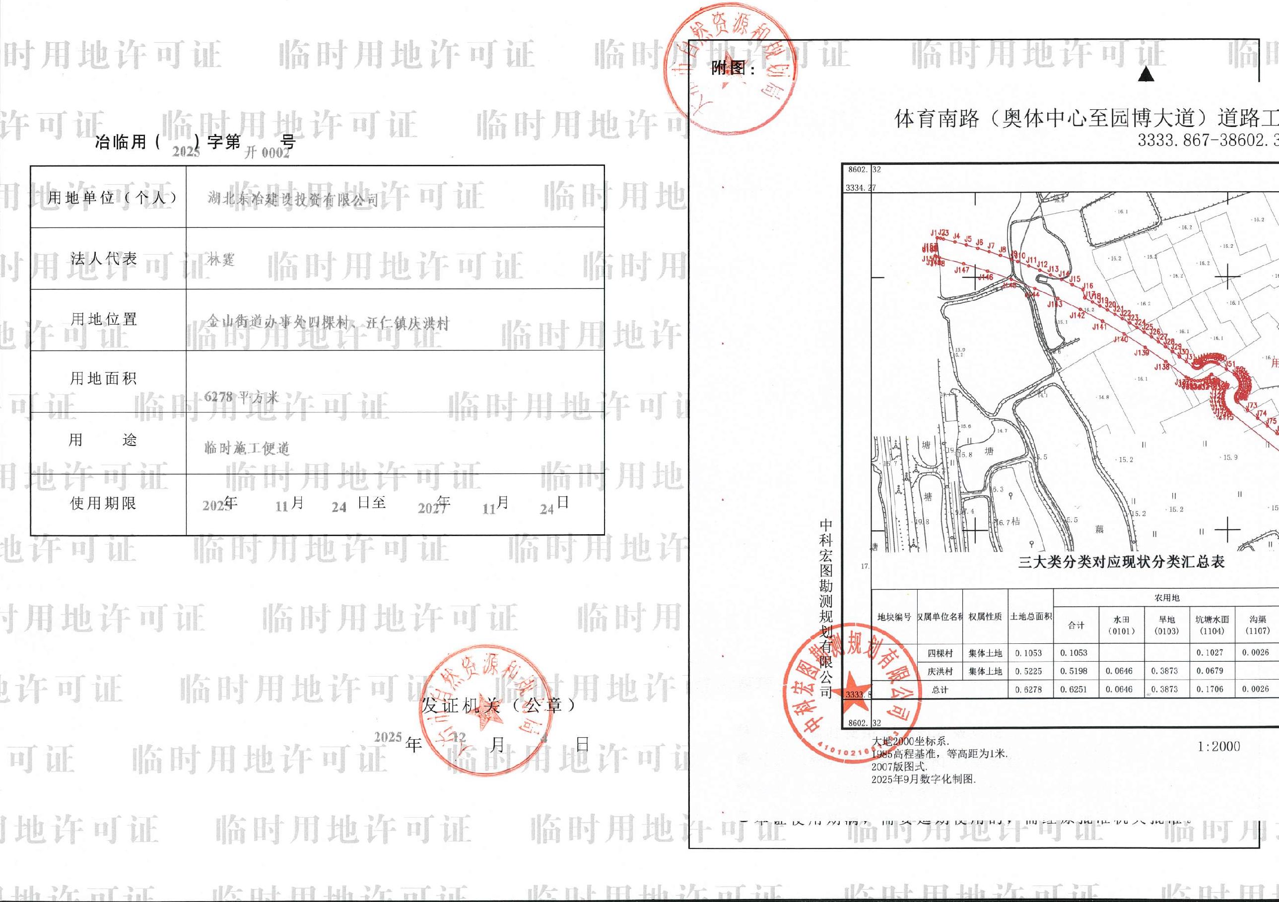临时用地许可证(体育南路(奥体中心至园博大道))