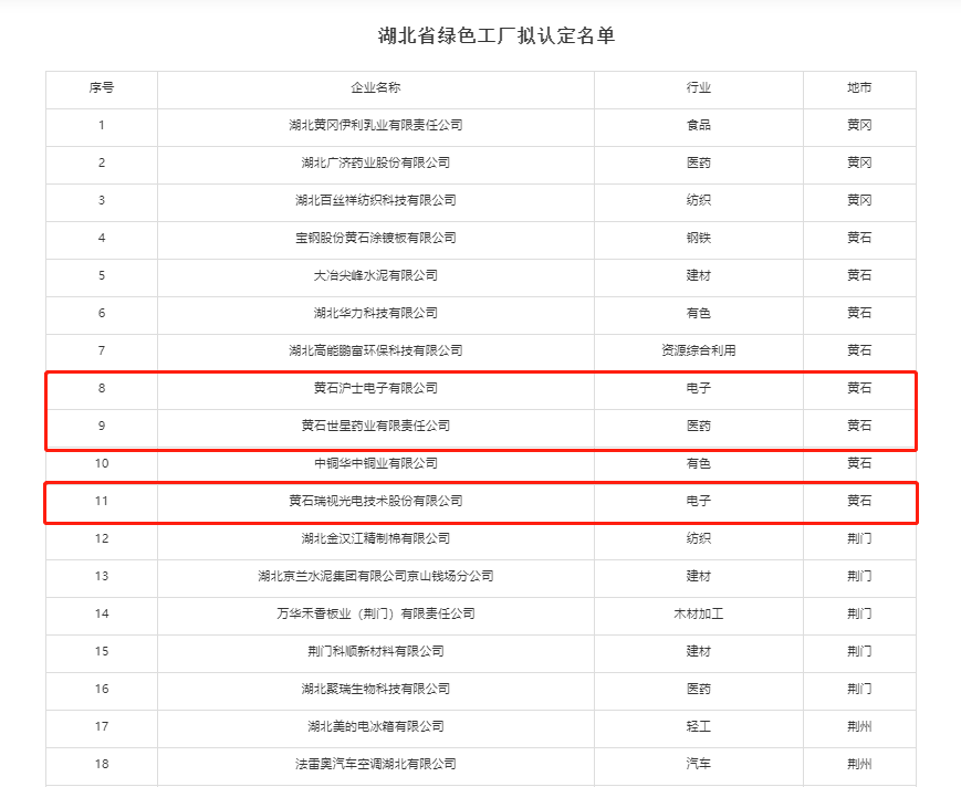 此次我区成功入选省级绿色工厂的3家企业,均是我区电子信息、生命健康等主导产业的佼佼者,是我区推动工业企业绿色发展的典型示范。其中沪士电子既是十多年前投资黄石的第一家PCB企业,更是我国中高端印制电路板的领先者、第一家在内地上市的具有台资背景的PCB企业,公司多层印制电路板销量在我国已多年蝉联第一;世星药业是我区一家从事原料研发和生产的高新技术企业,有着二十多年生产原料药的历史,拥有7个GMP生产车间及配套设施,生产能力和产品质量处于世界先进水平;瑞视光电是工业级电阻式触摸屏市场占有率全省排名第一、全国排名第三的高科技企业,公司亩均税收达到70万元/亩。