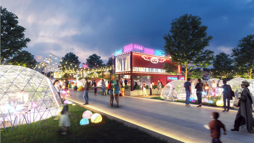 该项目由磁湖高新公司投资建设、运营,建设投资约2千万,项目位于我区湖北师范大学文理学院旁,紧邻工程职业学院新校区,湖山新城小区下楼即可触达,周边10余家大型企业,区位优势明显,覆盖群体广,消费能力强。该项目占地约3万方,是集餐饮、潮玩、游乐于一体化的集装箱潮流网红商业街,区位划分为大排档区、主题售卖区、电竞潮玩区、超集餐饮区。