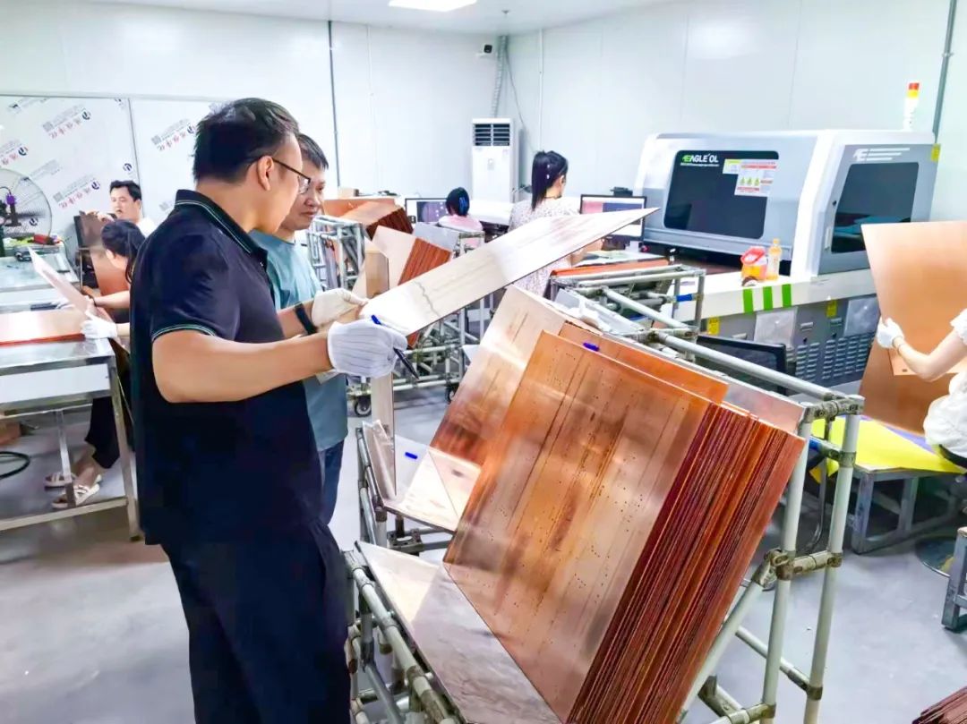 7月30日,在黄石恒荣晟电子有限公司智能设备制造基地生产车间,一片片电路板完成真空塞孔,从机器中送出,研磨、烘烤、检测、封装……工人们正在有条不紊地操作着一道道精密的工序,整个生产线一片繁忙景象,该公司7月上旬完成了设备的搬迁和调试工作,目前正在抓紧生产。