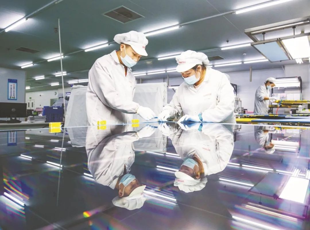 赫得纳米科技(黄石)有限公司无尘车间,技术人员正在赶制显示屏。