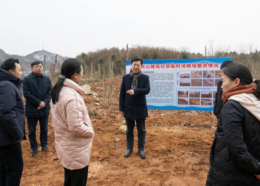 郄英才检查开发区·铁山区大冶铁矿桃花山塌陷区违规填埋建筑垃圾问题整改情况