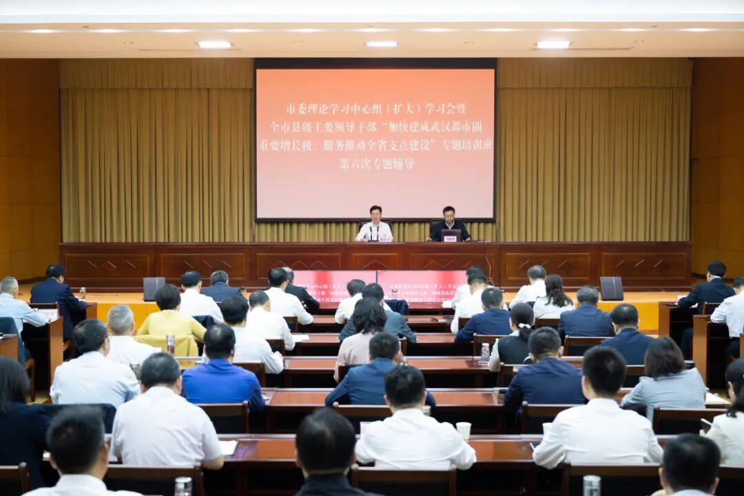 10月16日,市委理论学习中心组(扩大)学习会暨全市县级主要领导干部“加快建成武汉都市圈重要增长极、服务推动全省支点建设”专题培训班第六次专题辅导举行。市委书记郄英才主持会议并讲话,强调要深入学习贯彻习近平总书记关于科技创新的重要论述和考察湖北重要讲话精神,聚焦聚力打造全省科技创新协同区、建设创新强市,扎实推进科技创新和产业创新深度融合,为加快建成武汉都市圈重要增长极、服务推动全省支点建设贡献更多科技力量。
