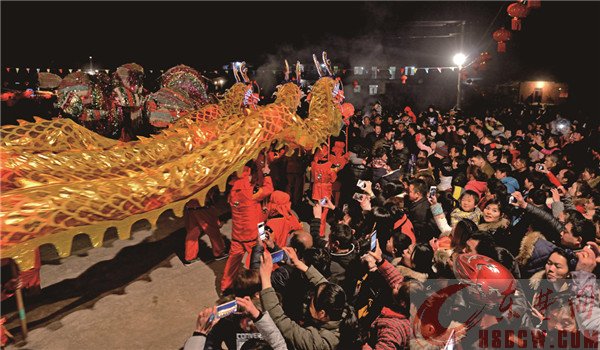 2月15日夜,黄石经济技术开发区汪仁镇王贵村武龙灯表演吸引了万余人参观。