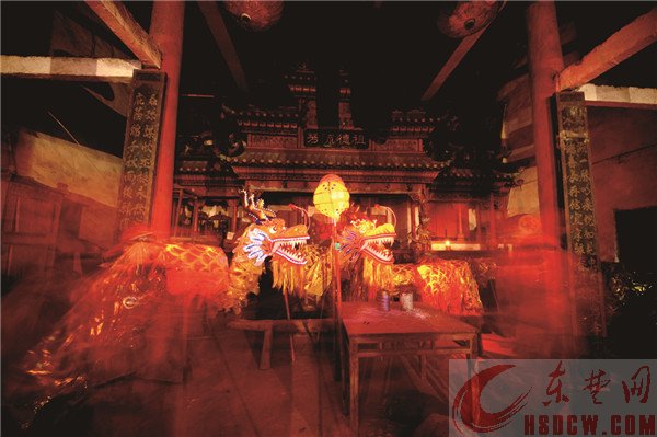 该村现有三条龙灯,均在百节以上,里面装有彩灯,十分壮观,舞龙队配有灯笼、龙门、龙牌、戏珠、天狮子、喇叭队、锣鼓队等。当三条龙灯请出王氏祠堂时,锣鼓喧天、喇叭齐鸣、龙灯调响彻云霄,百节龙身灯火辉煌。