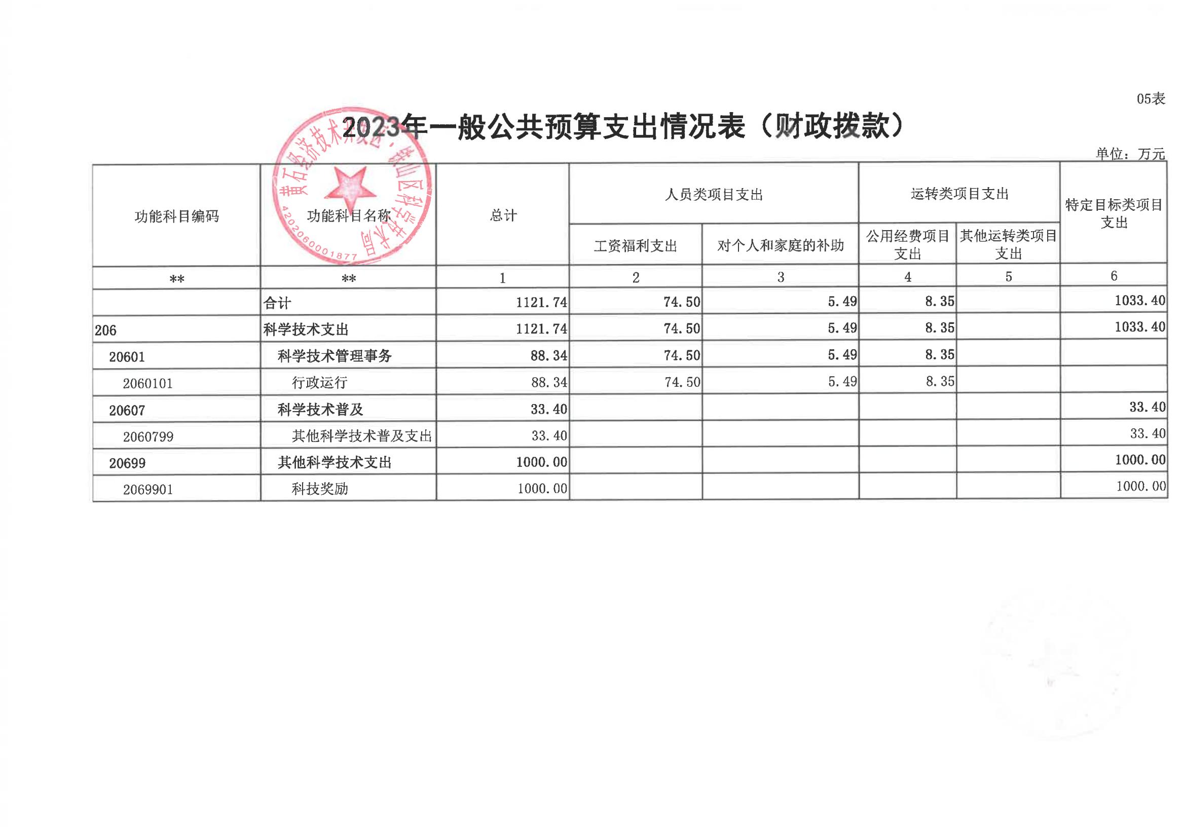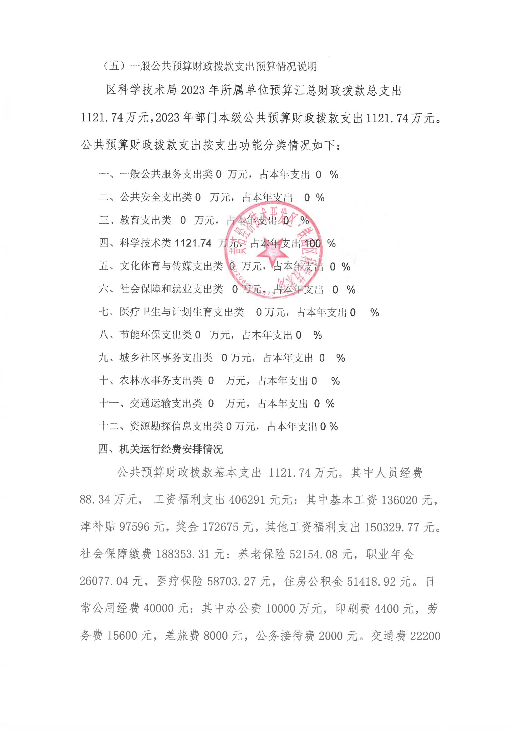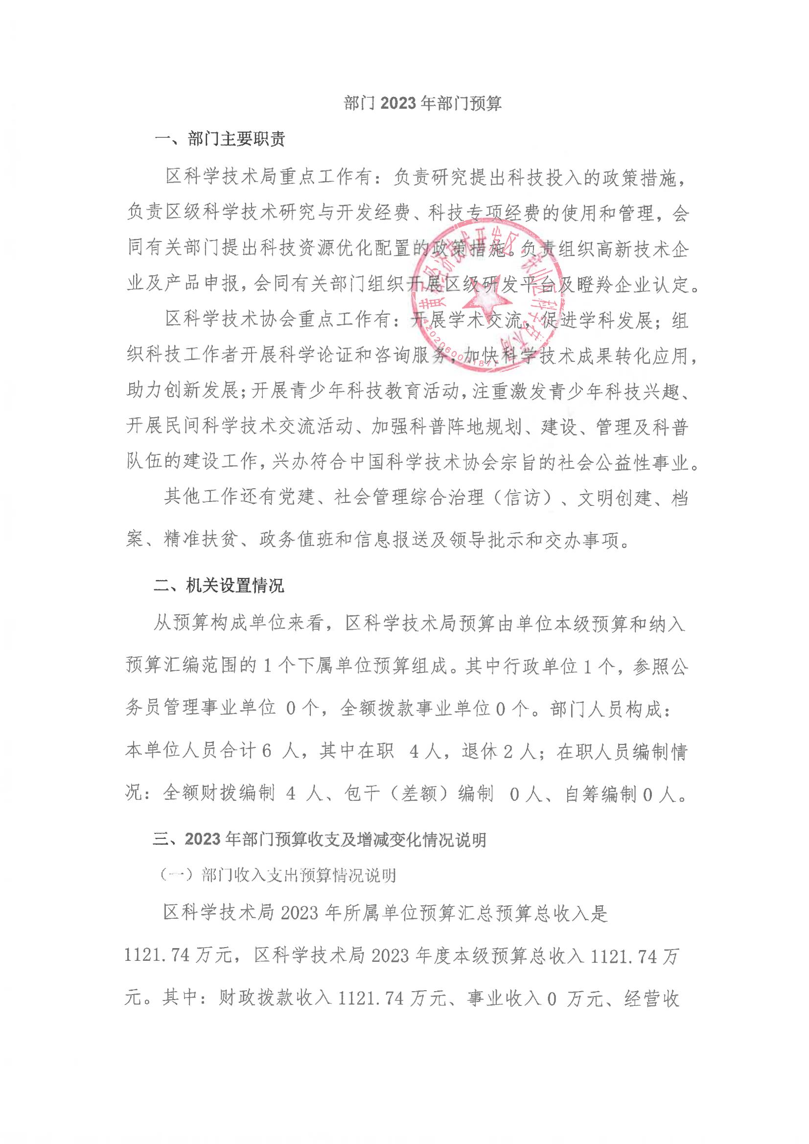 区科学技术局2023年部门预算公开
