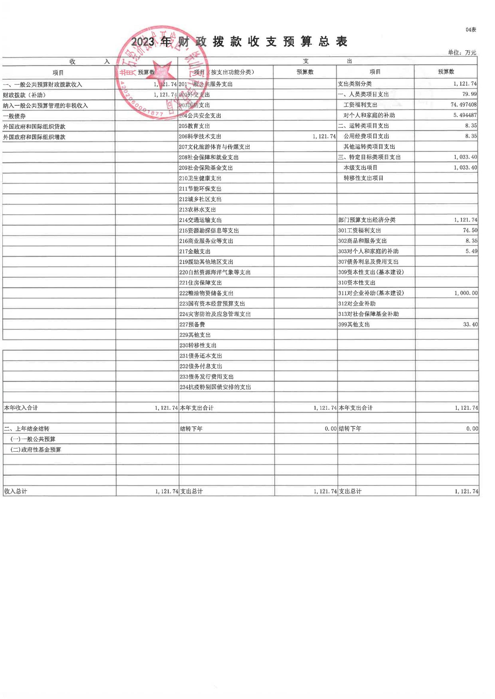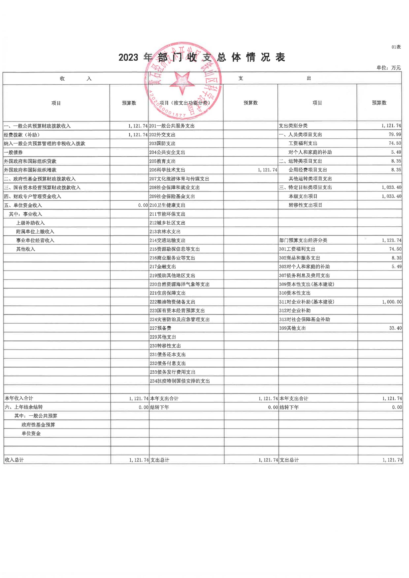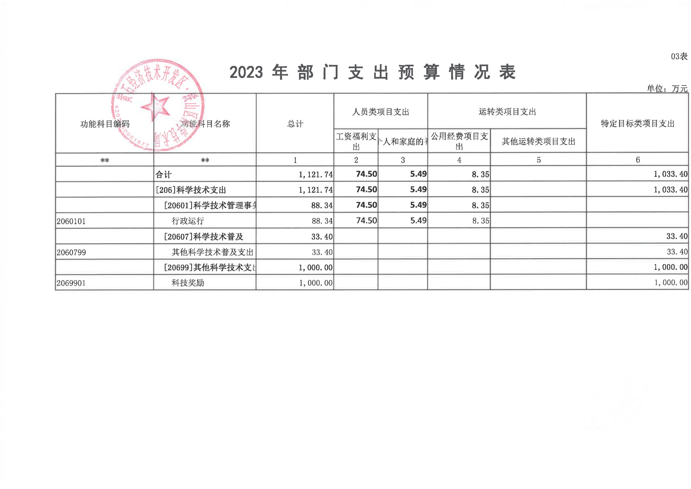 区科学技术局2023年部门预算公开