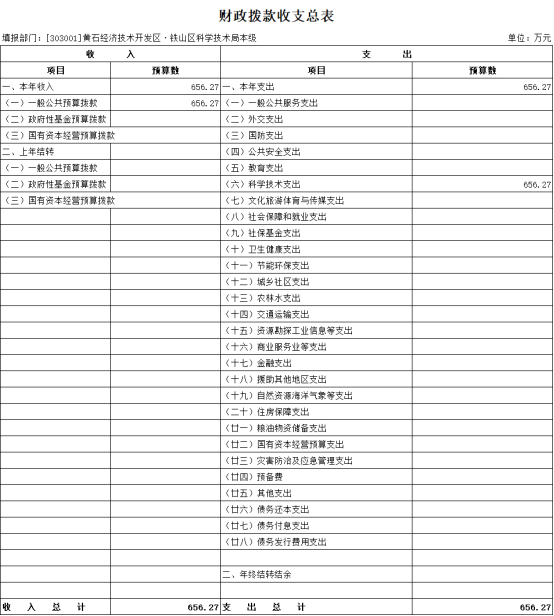 四、科学技术类656.27万元,占本年支出100%