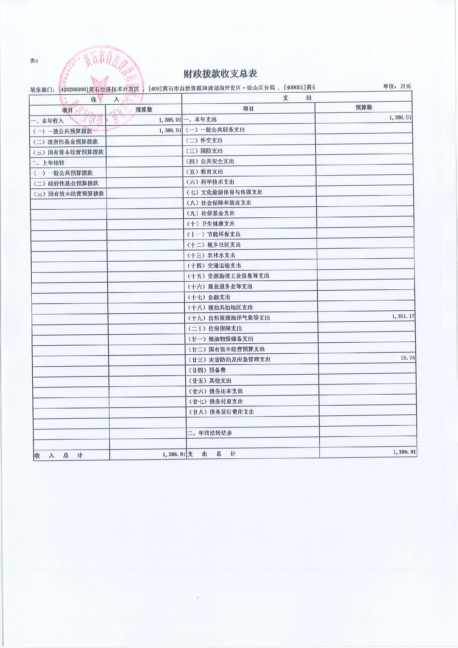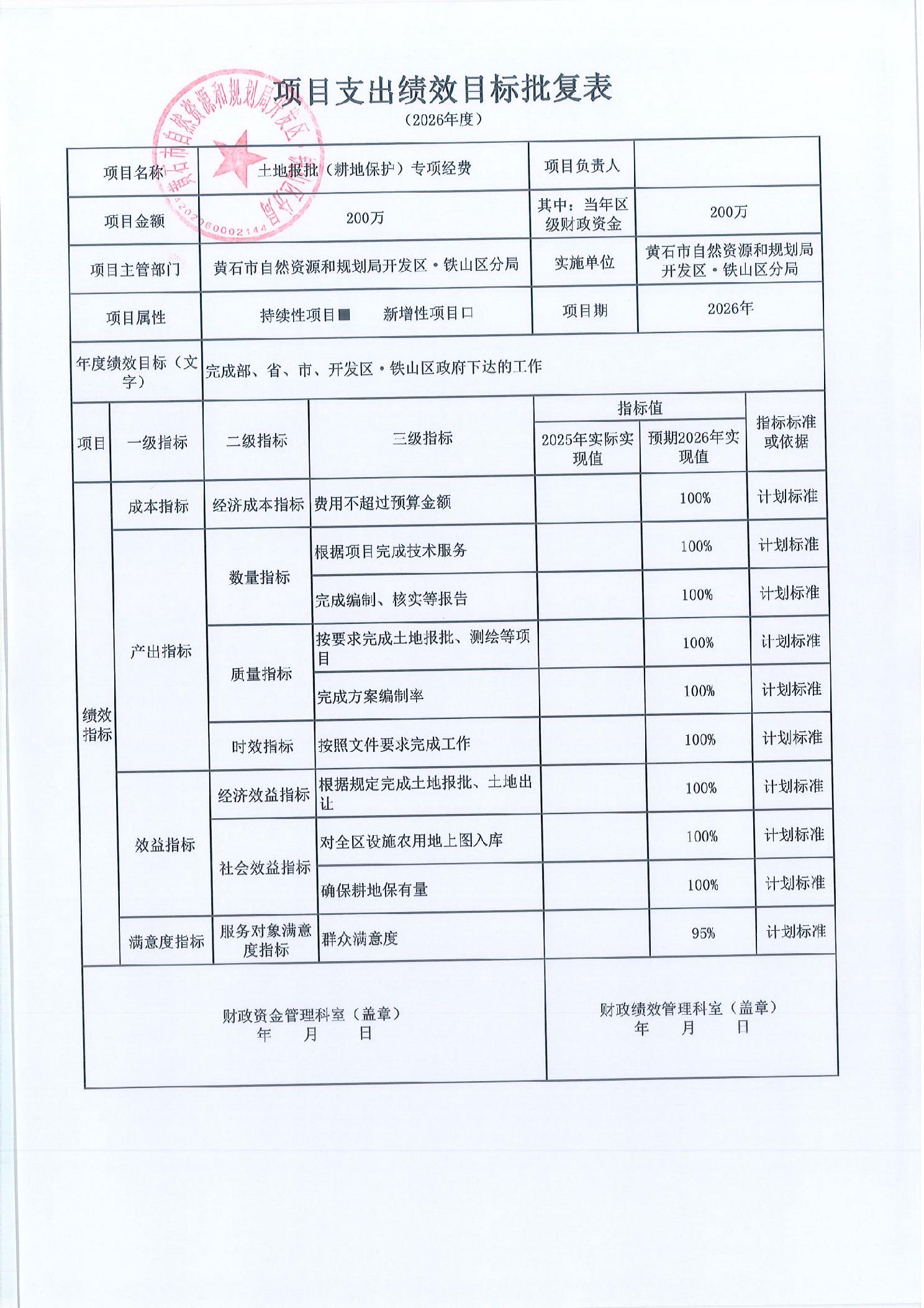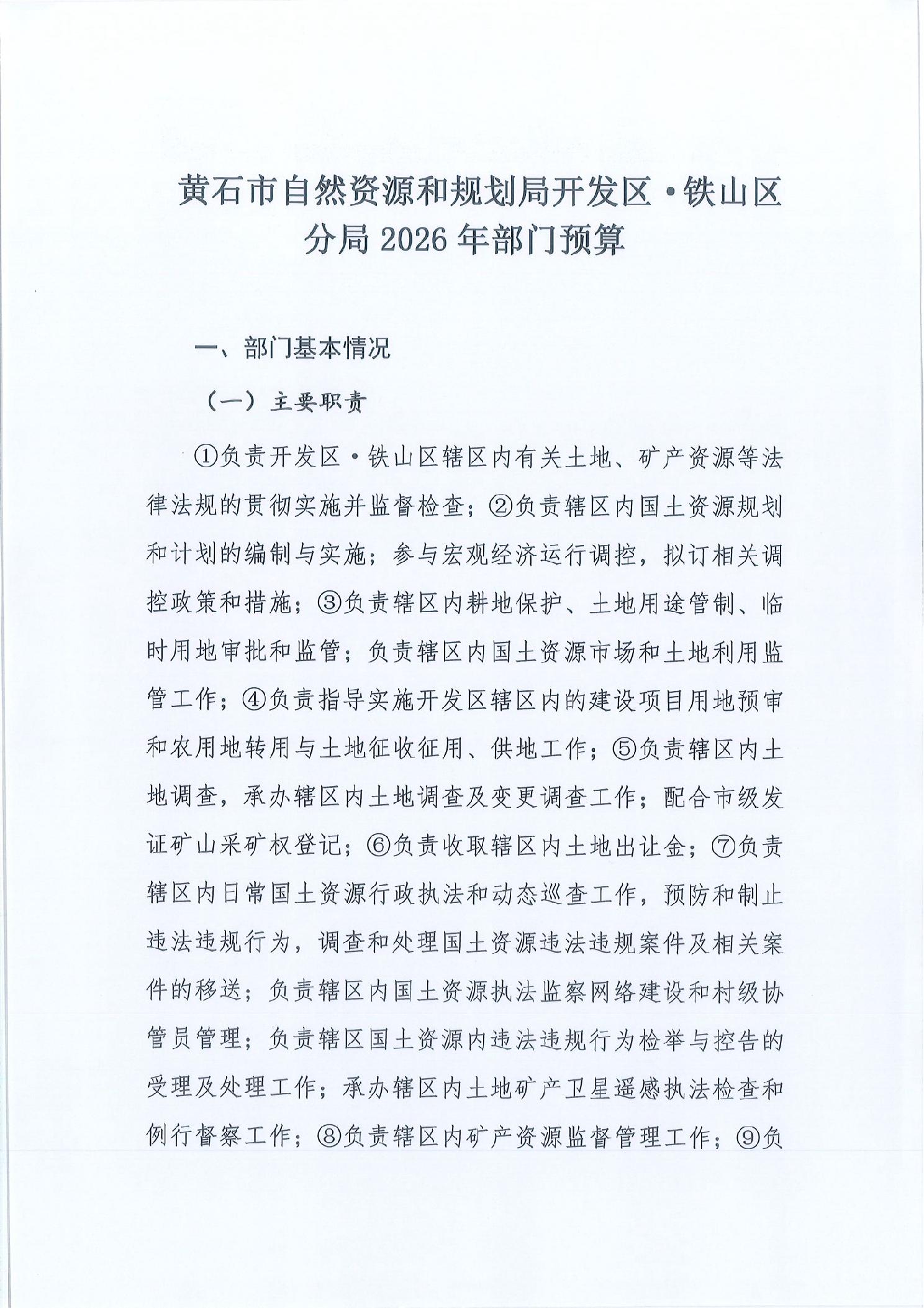 黄石市自然资源和规划局开发区·铁山区分局2026年部门预算公开