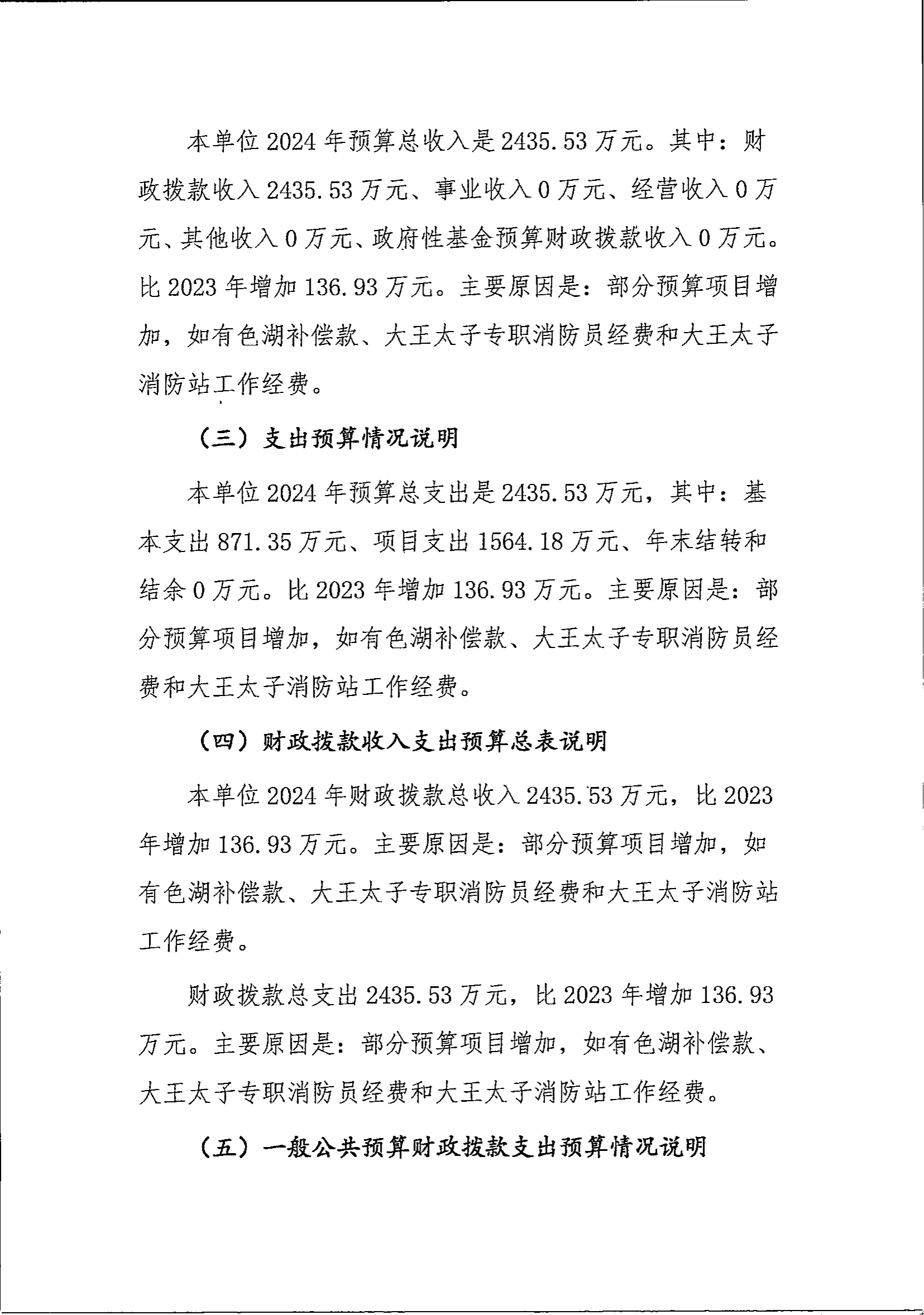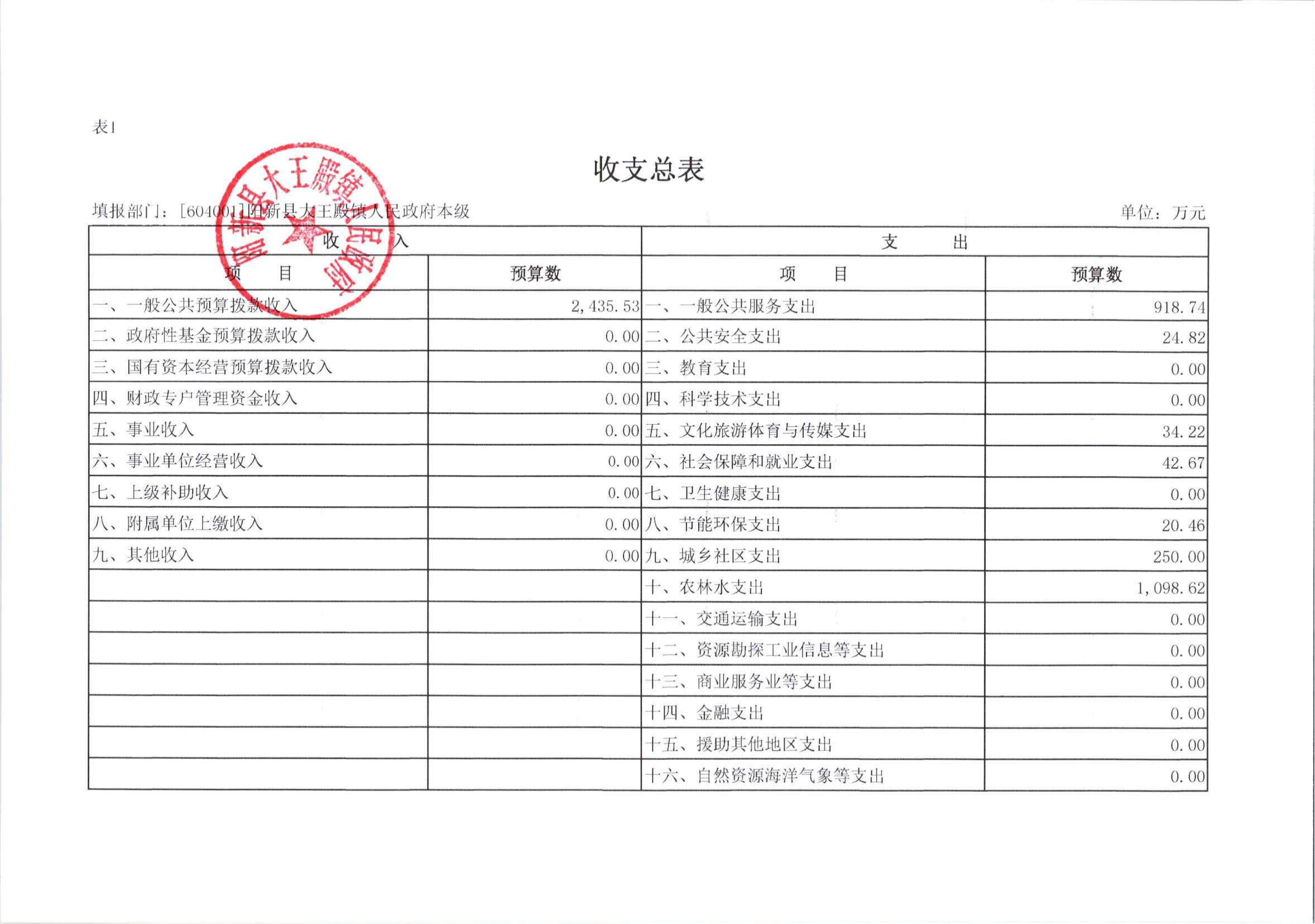 大王镇2024年部门预算公开