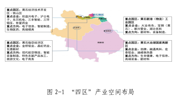 “十四五”期间,我市按照整体统筹、错位发展、协同联动的原则,结合黄石市工业基础,大力发展块状经济,加快形成区域协调发展的“四区N园”产业空间发展新格局。