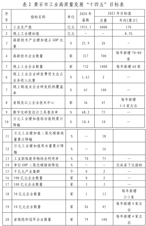“十四五”时期,黄石工业高质量发展的定位为:全力打造先进制造之城,加快建设“五基地一先行区”,在全球、全国产业分工和价值链中处于中高端位置,努力建成全国先进制造业基地。