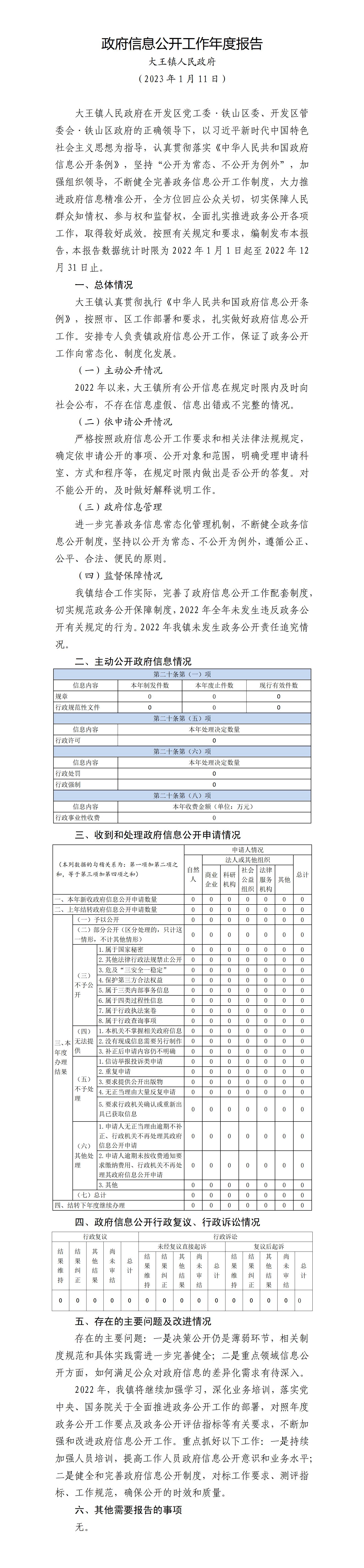 2022年大王镇政府信息公开年度报告