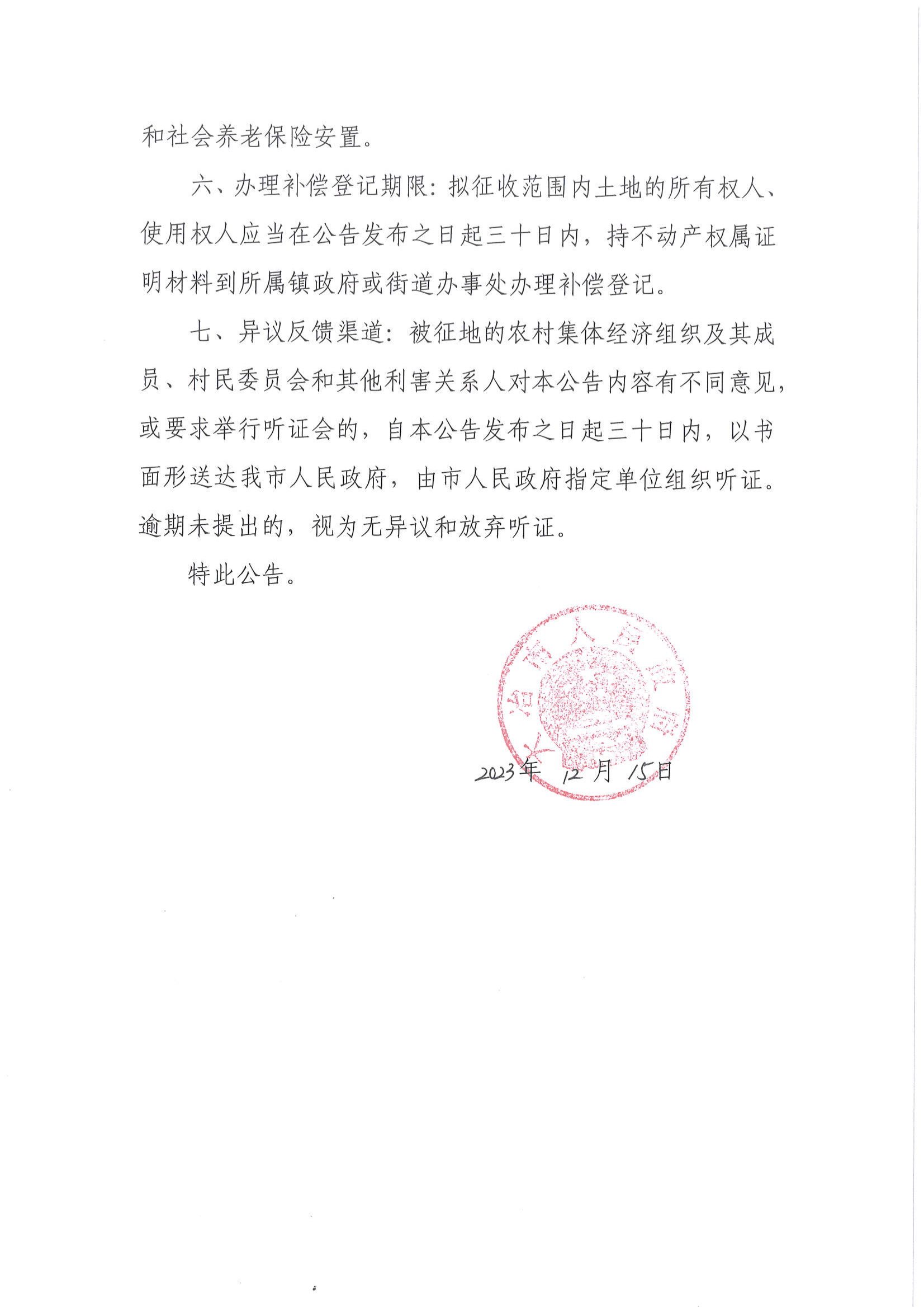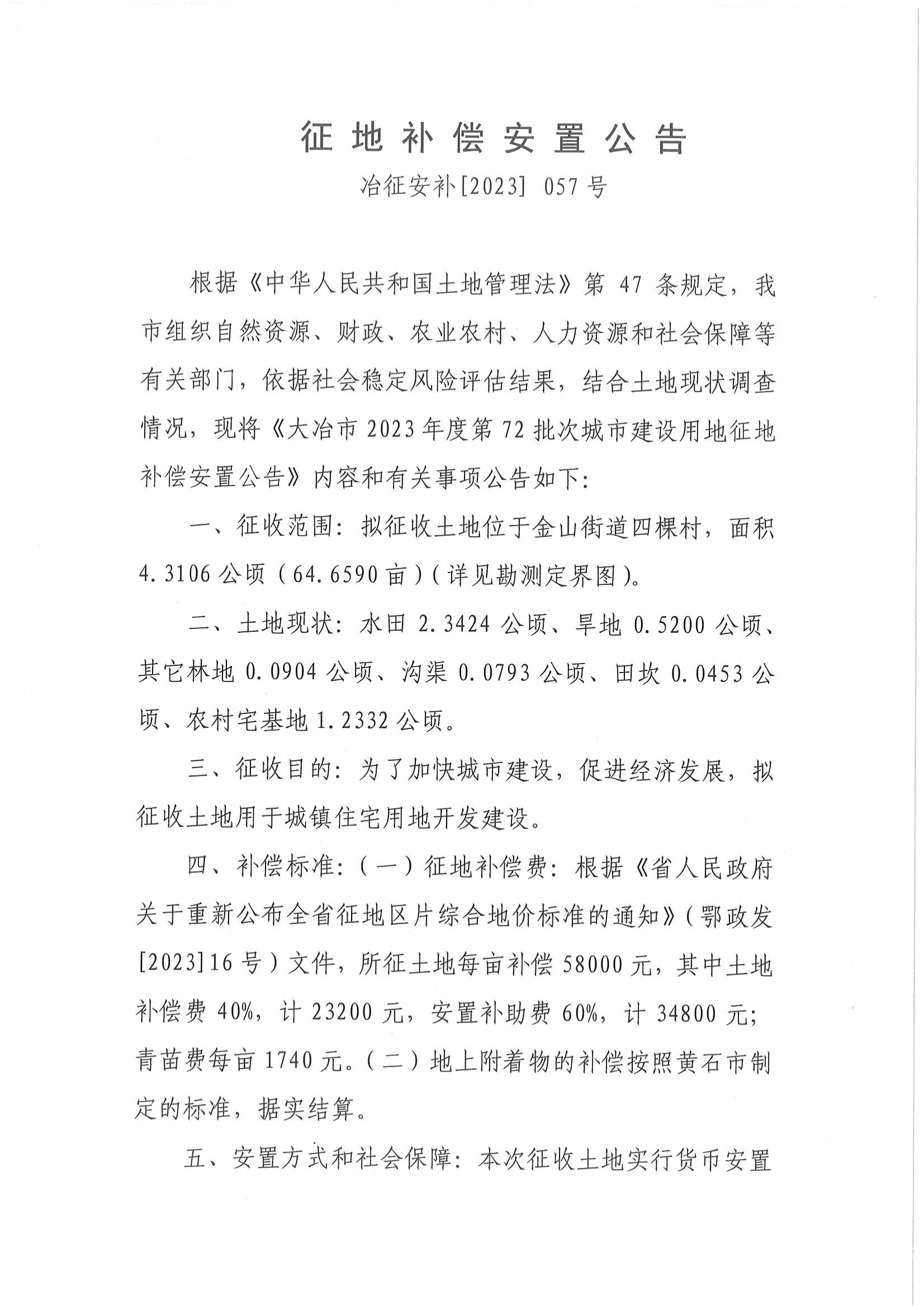 征地补偿安置公告——冶征安补【2023】057号