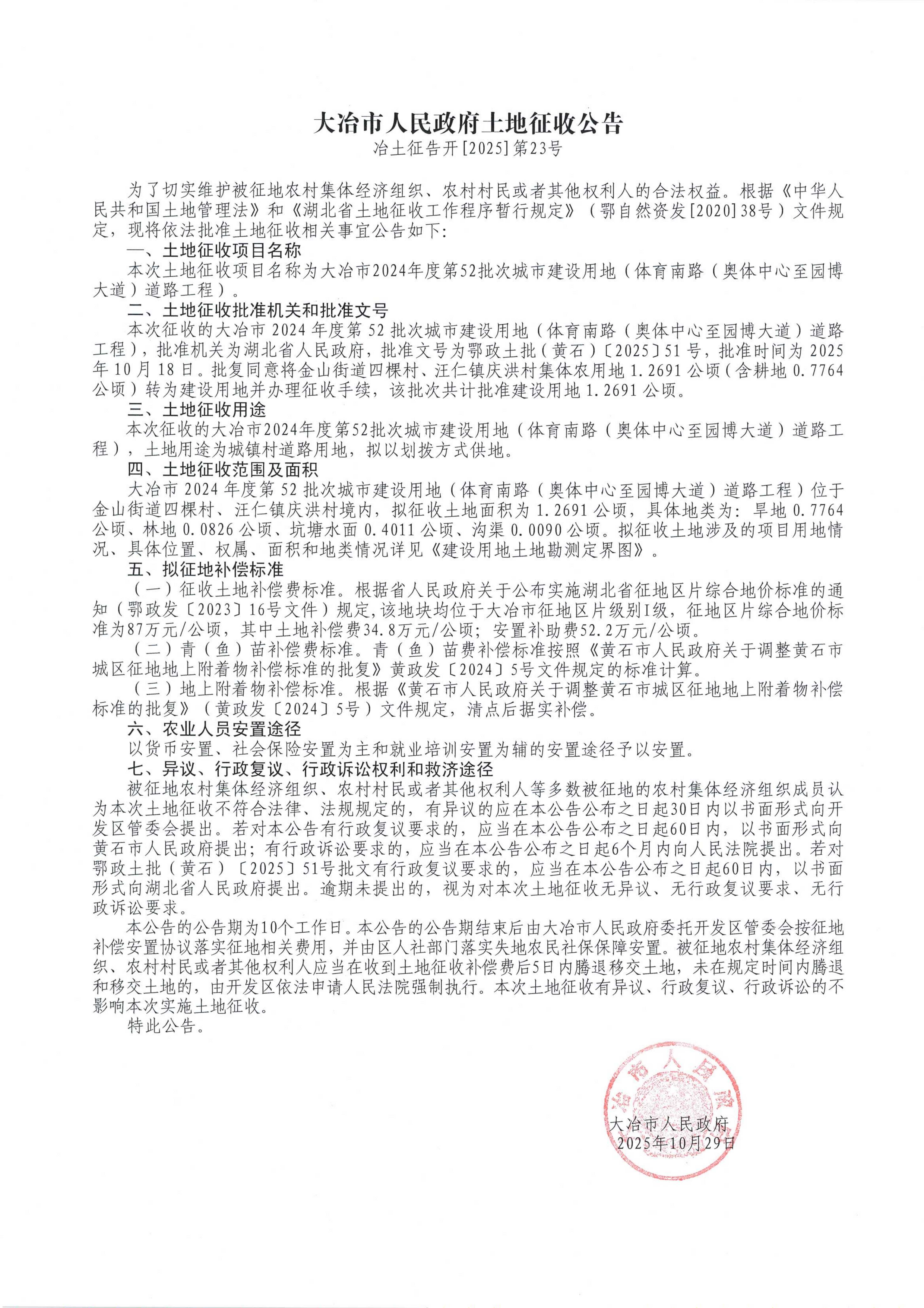 大冶市人民政府土地征收公告——冶土征告开[2025]第23号