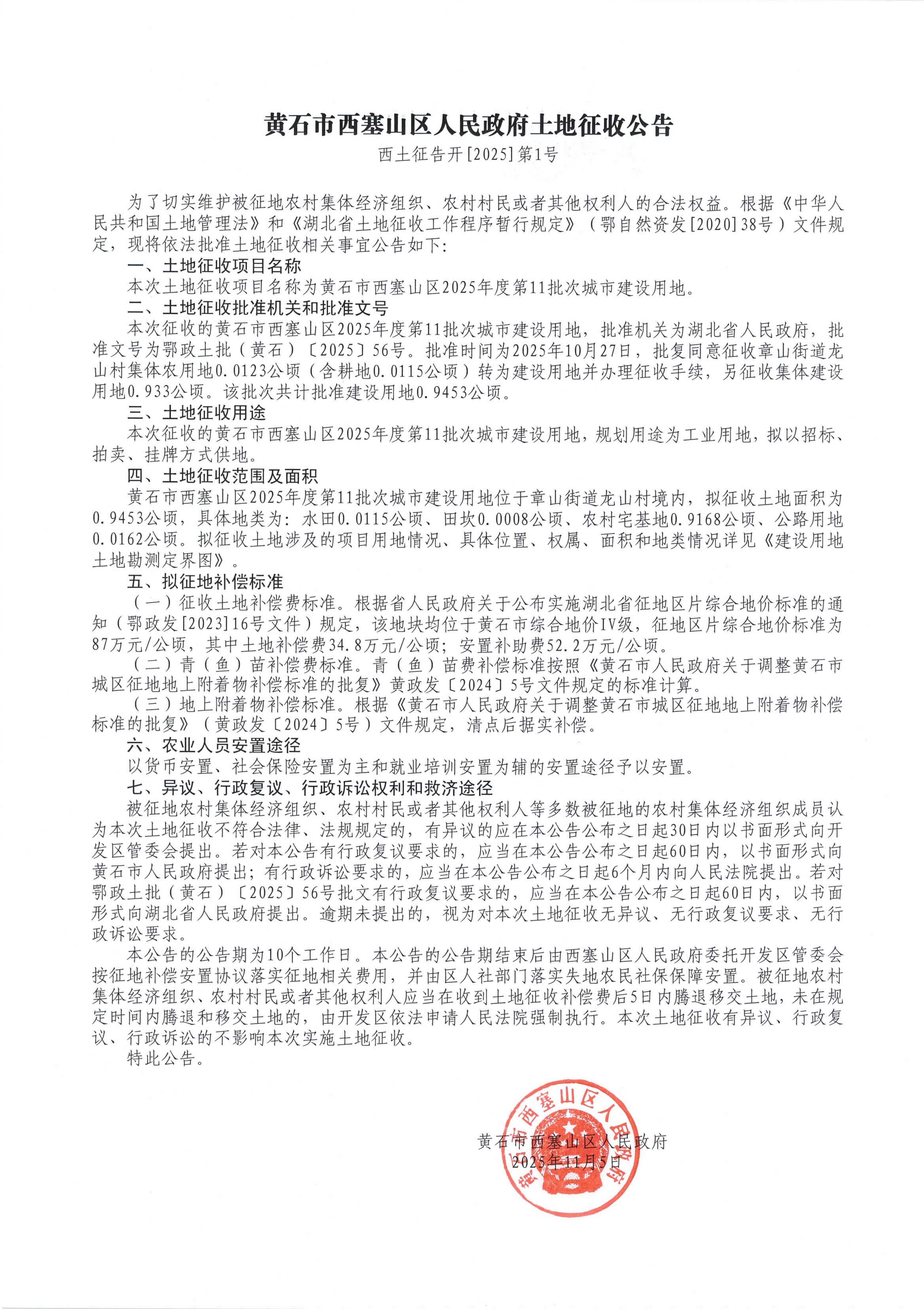 黄石市西塞山区人民政府土地征收公告——西土征告开[2025]第1号