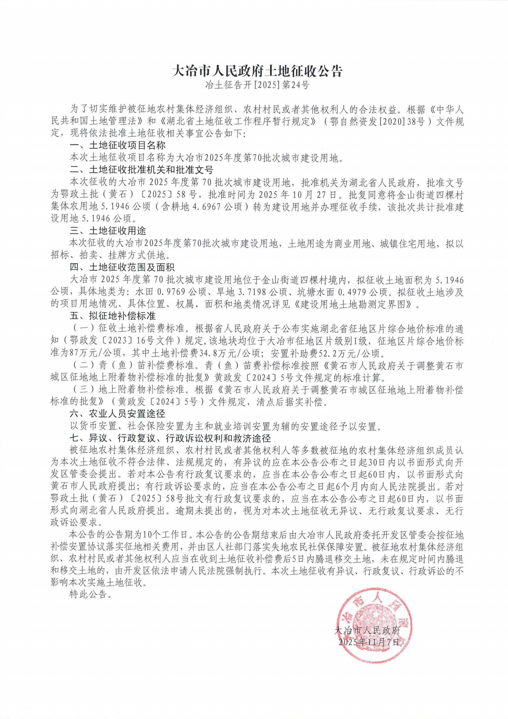 大冶市人民政府土地征收公告——冶土征告开[2025]第24号