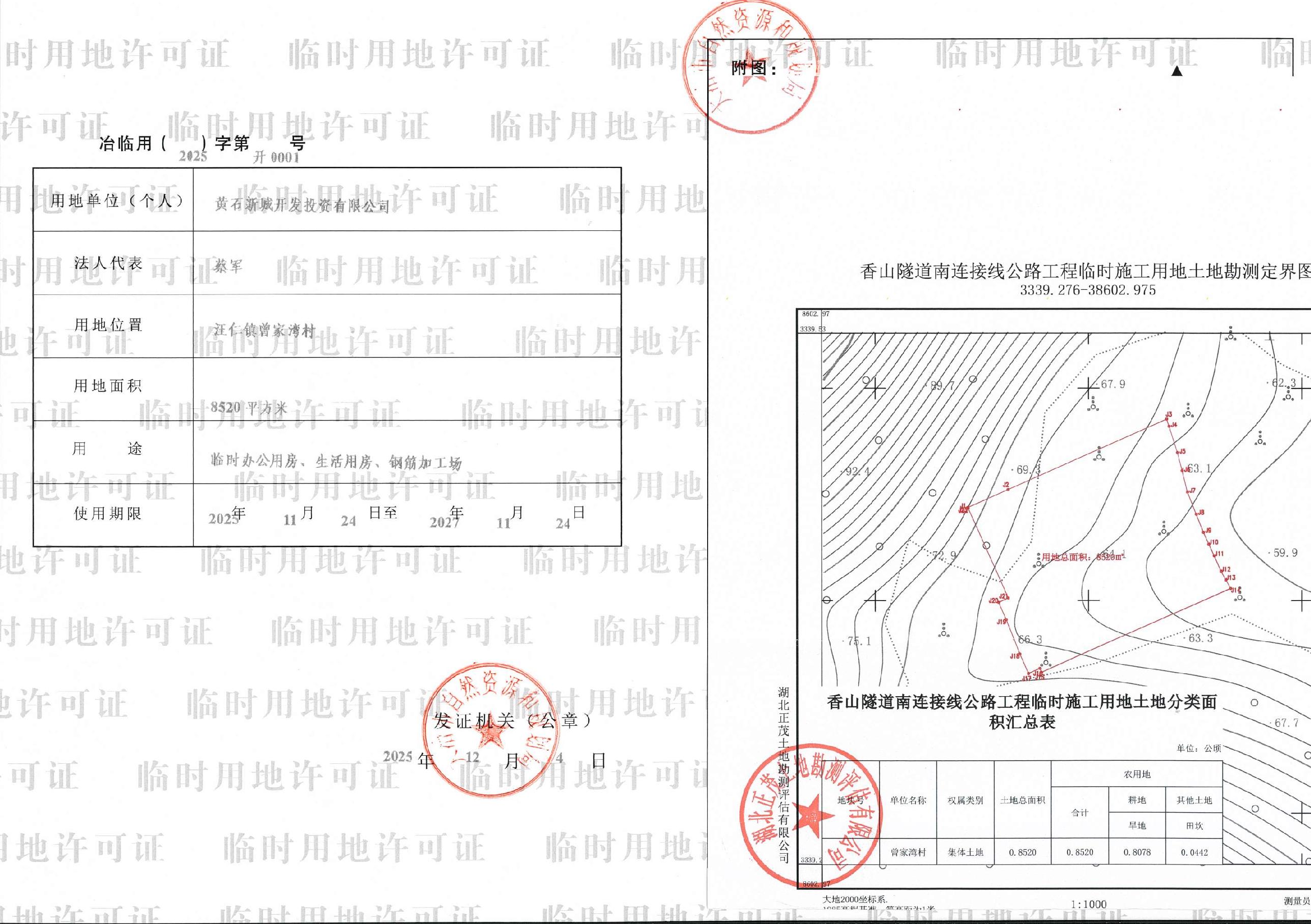 临时用地许可证(香山隧道)