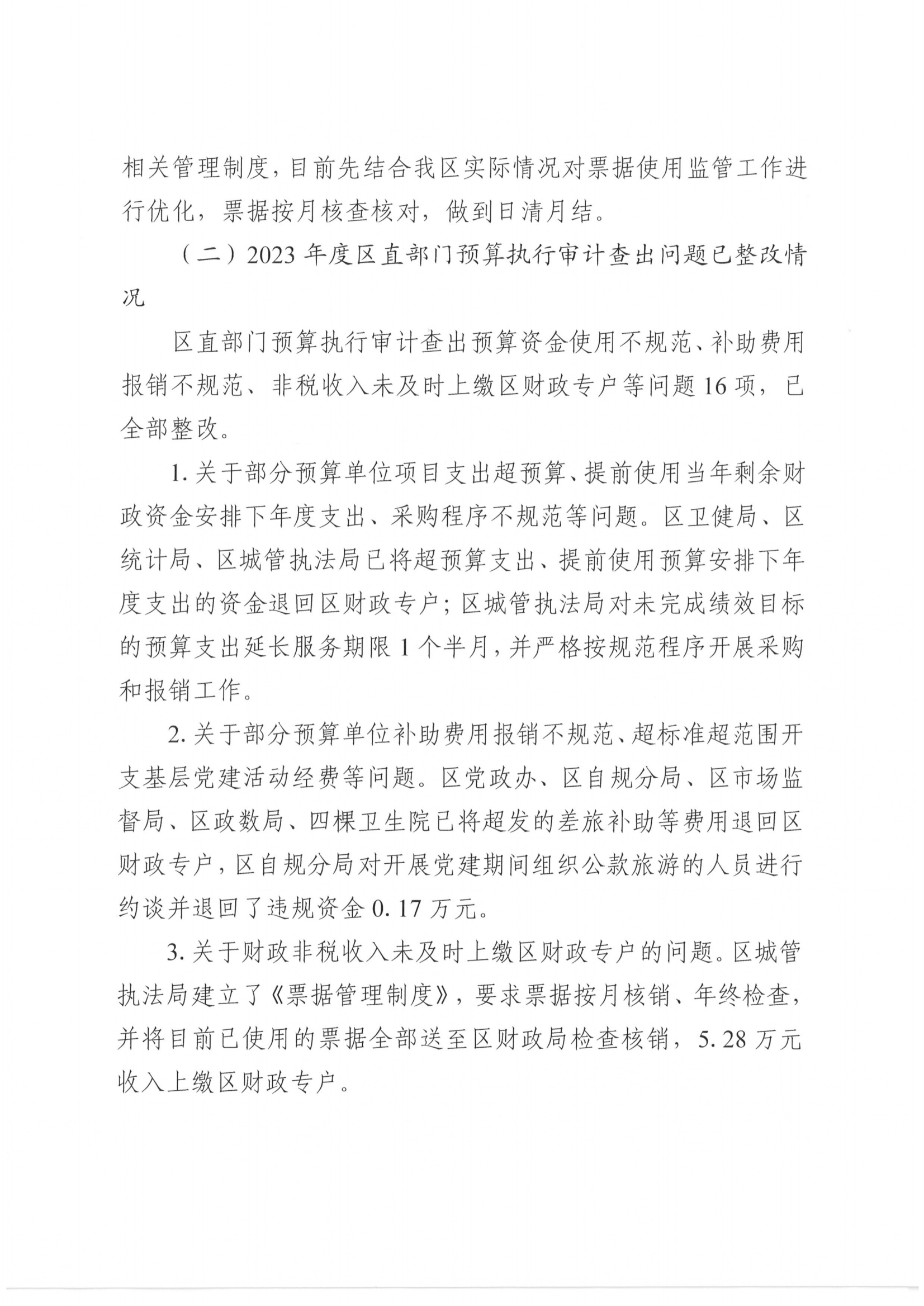 关于黄石经济技术开发区·铁山区2023年度预算执行和其他财政收支审计查出问题整改情况的报告