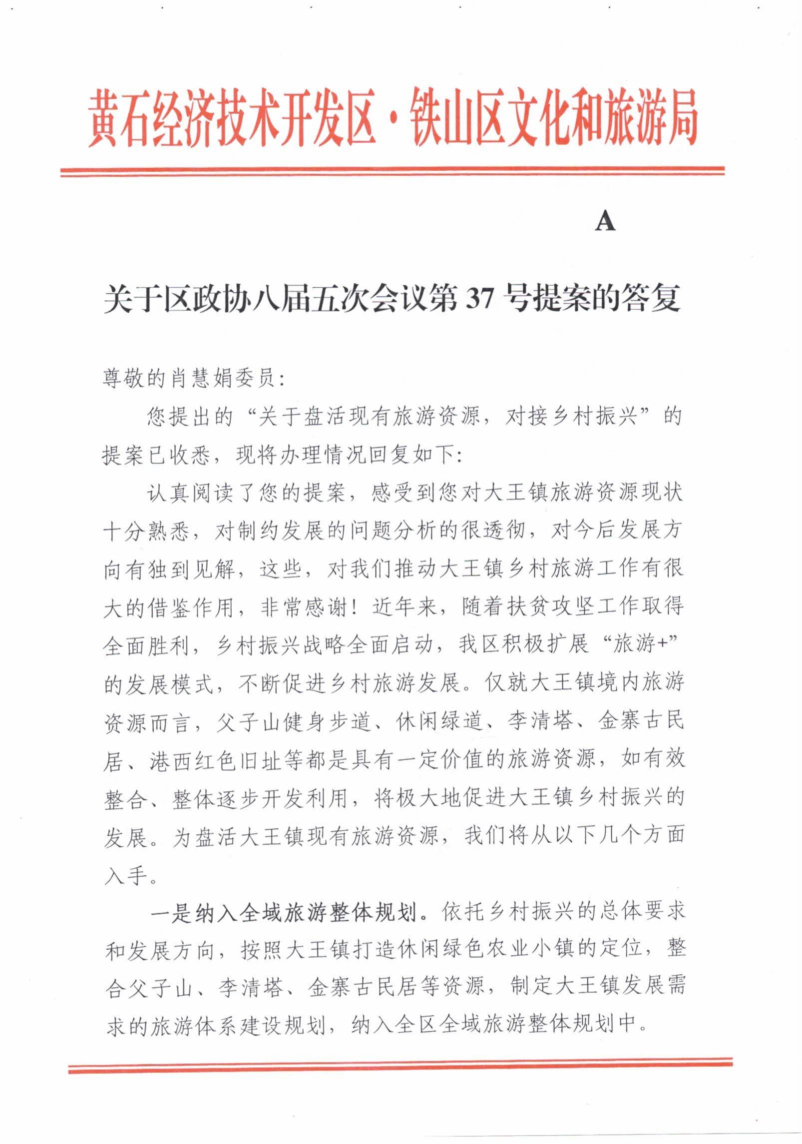 【2021年】关于区八届政协五次会议第37号提案的答复