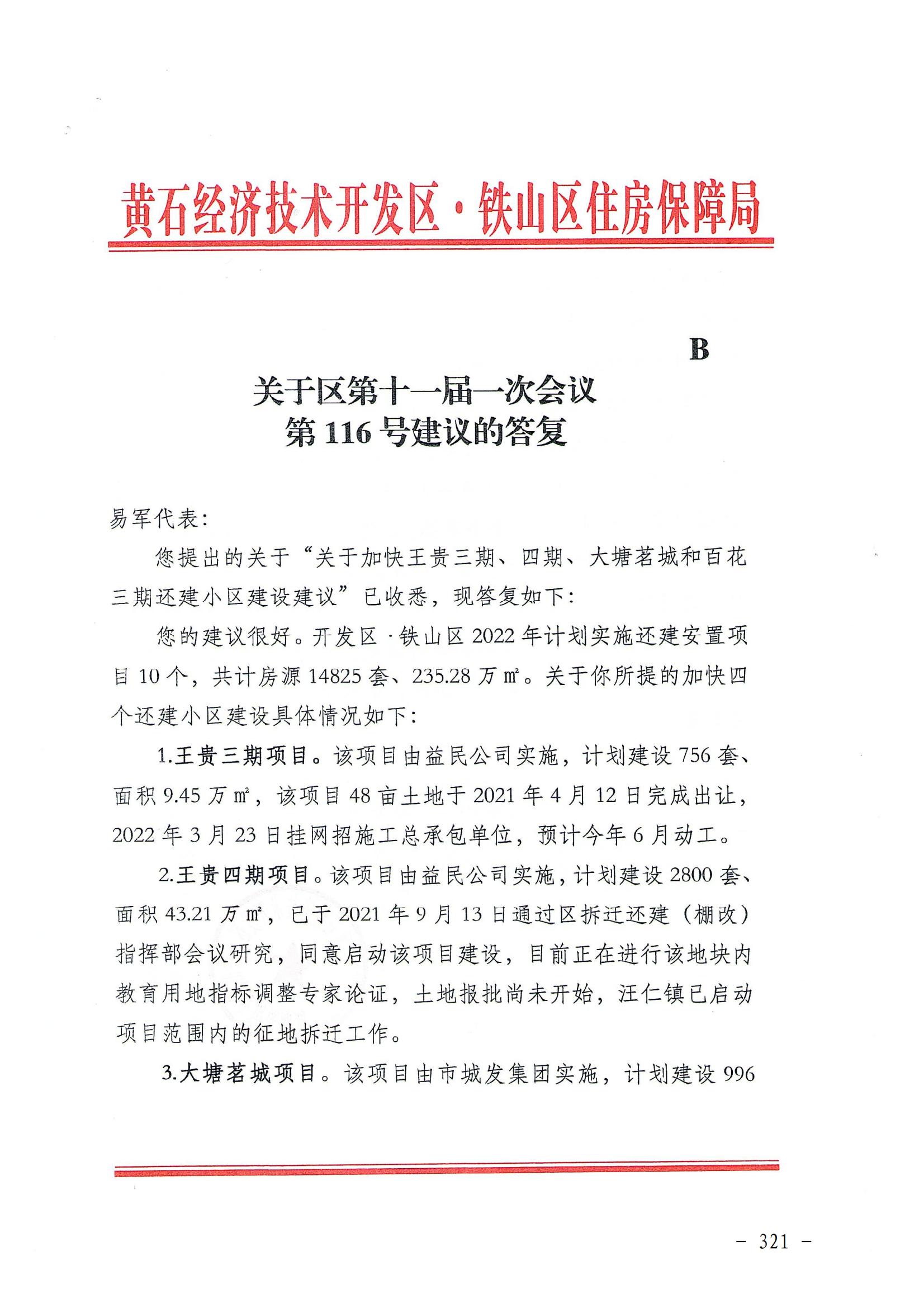 【2022年】关于区第十一届一次会议第116号建议的答复