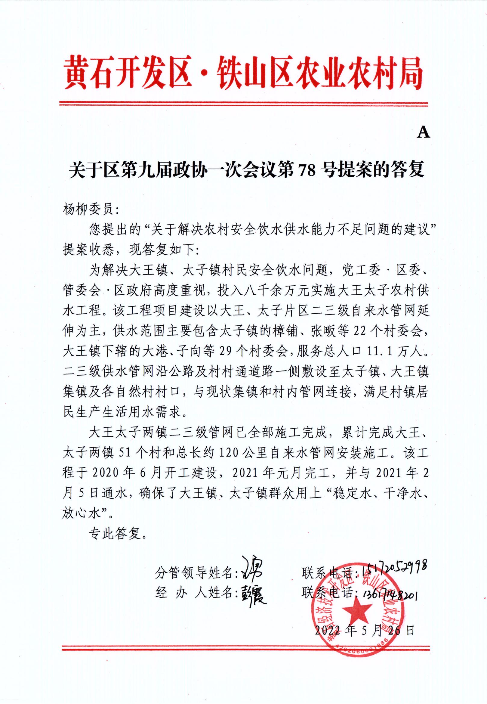 【2022年】关于区第九届政协一次会议第78号提案的答复