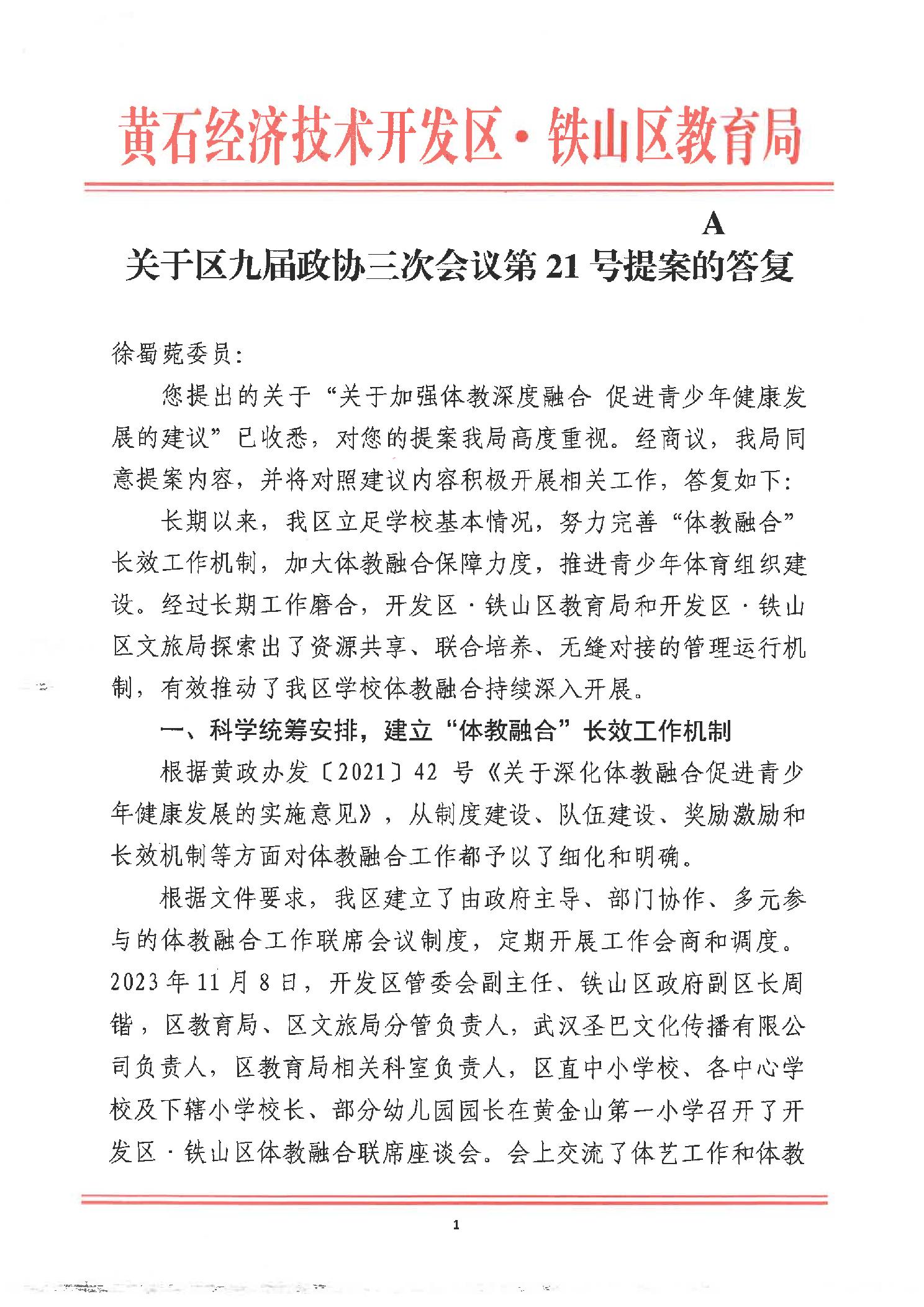 关于区九届政协三次会议第21号提案的答复