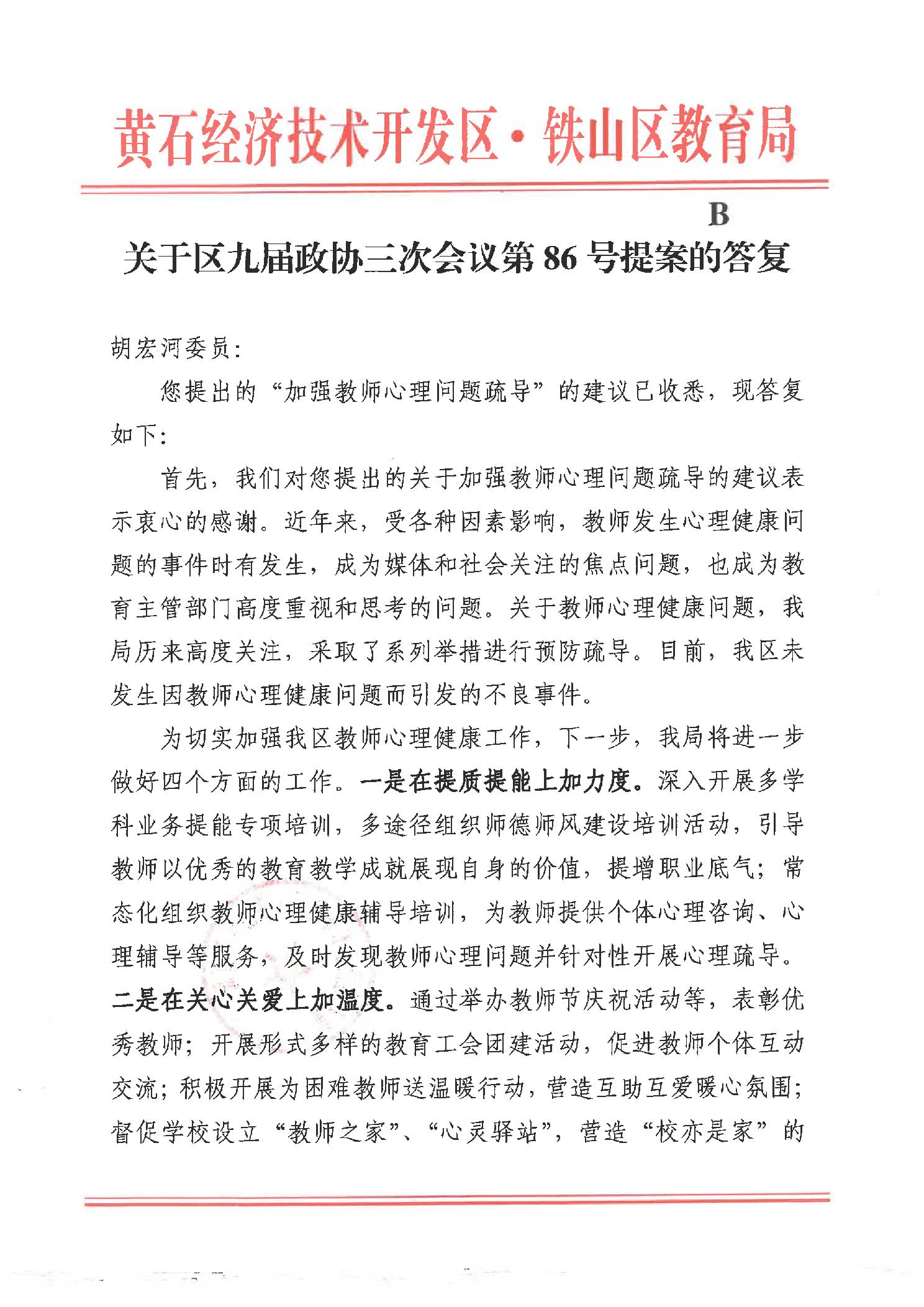 关于区九届政协三次会议第86号提案的答复